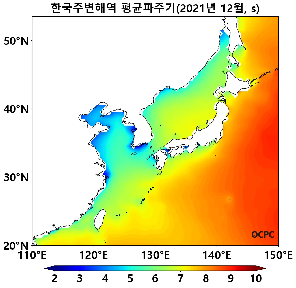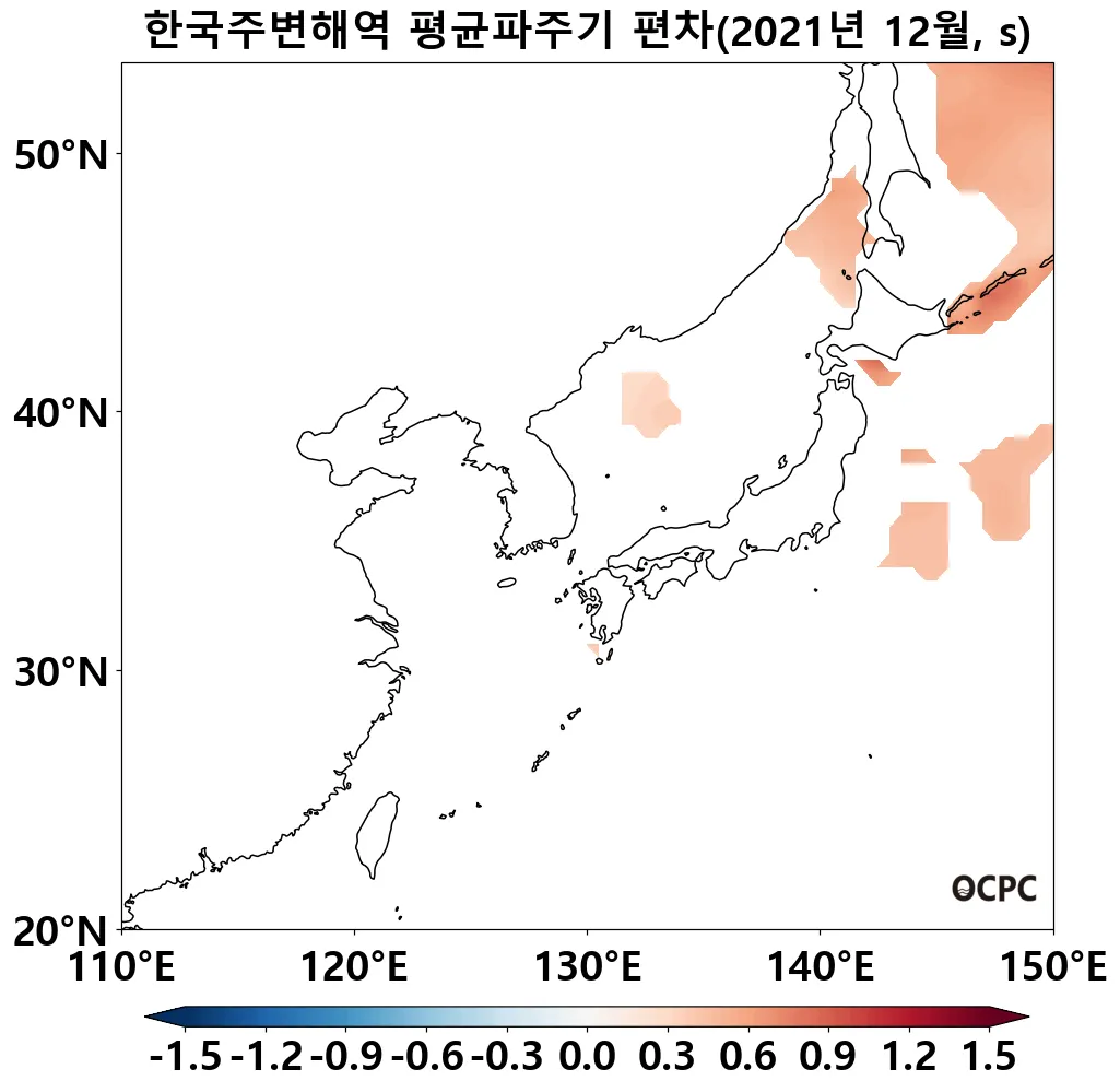 동해, 황해, 동중국해의 평균파주기는 평년(6.0초, 4.6초, 6.0초)과 비슷했습니다.