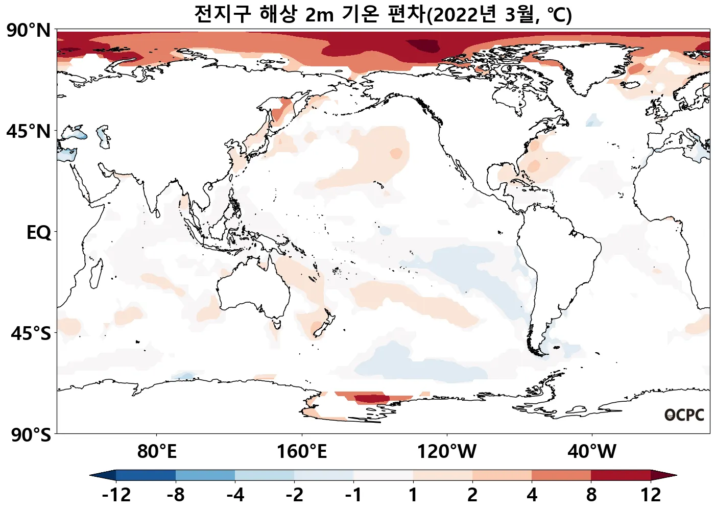 전지구 평균 해상기온은 평년(16.4°C)보다 0.4°C 높았으며, 북극해의 해상기온이 두드러지게 높았습니다.