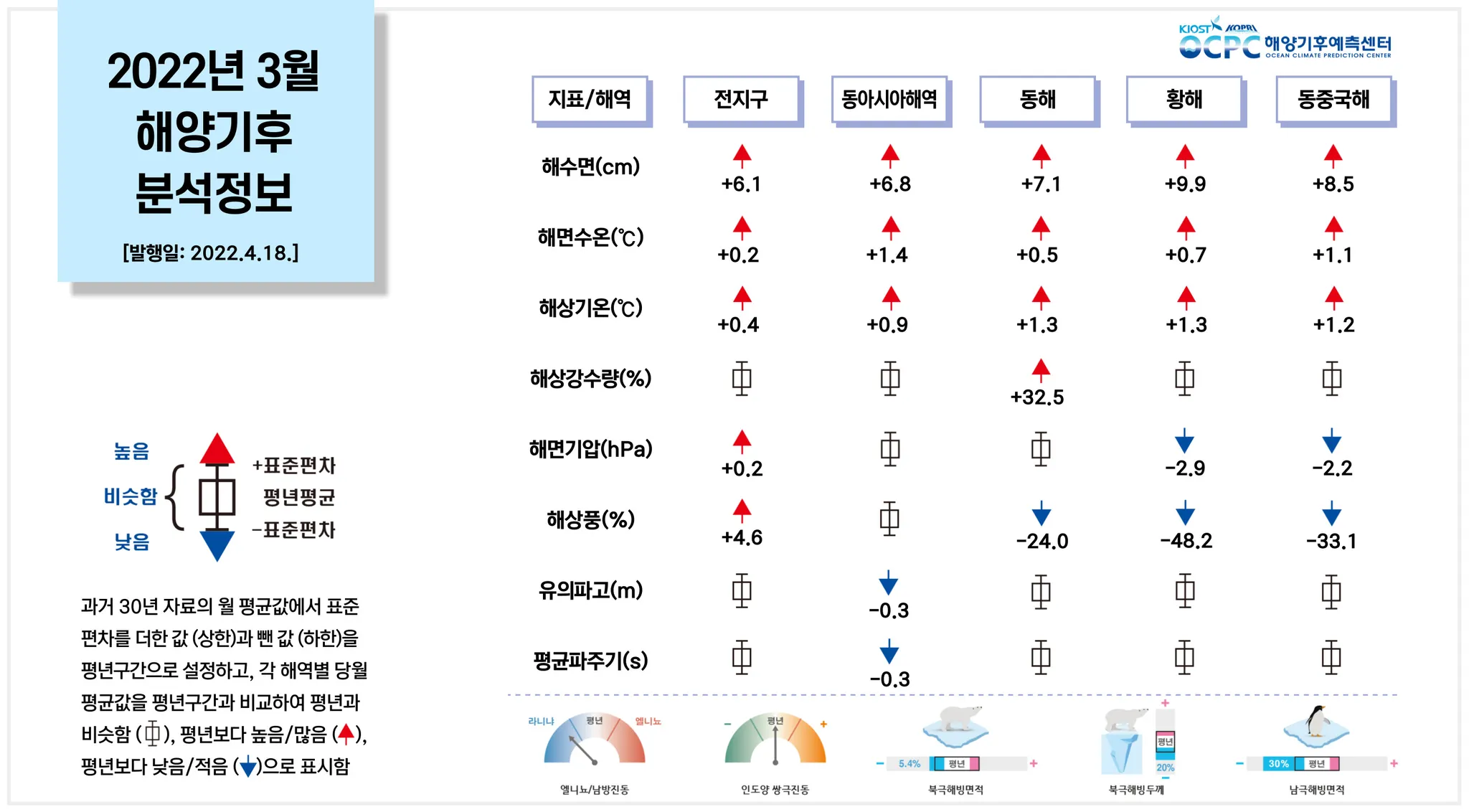 요약 : 3월은 라니냐가 지속되고 있으며, 황해의 해수면 상승이 두드러진 가운데, 동중국해와 동아시아해역에서 지난 30년 중 가장 높은 해면수온을 기록하였습니다.