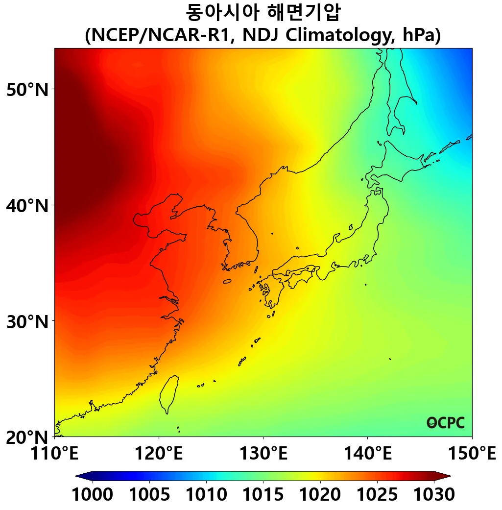 B. 동아시아 해면기압(평년 11~1월 평균)