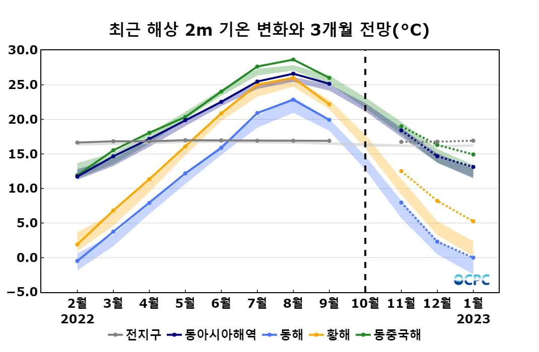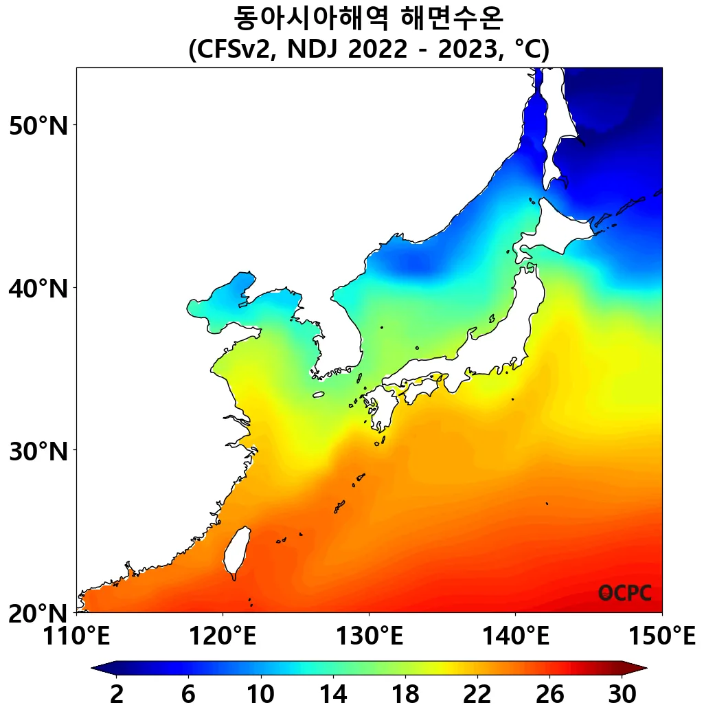 A. 동아시아해역 해상기온 전망(2022년 11월~2023년 1월 평균)