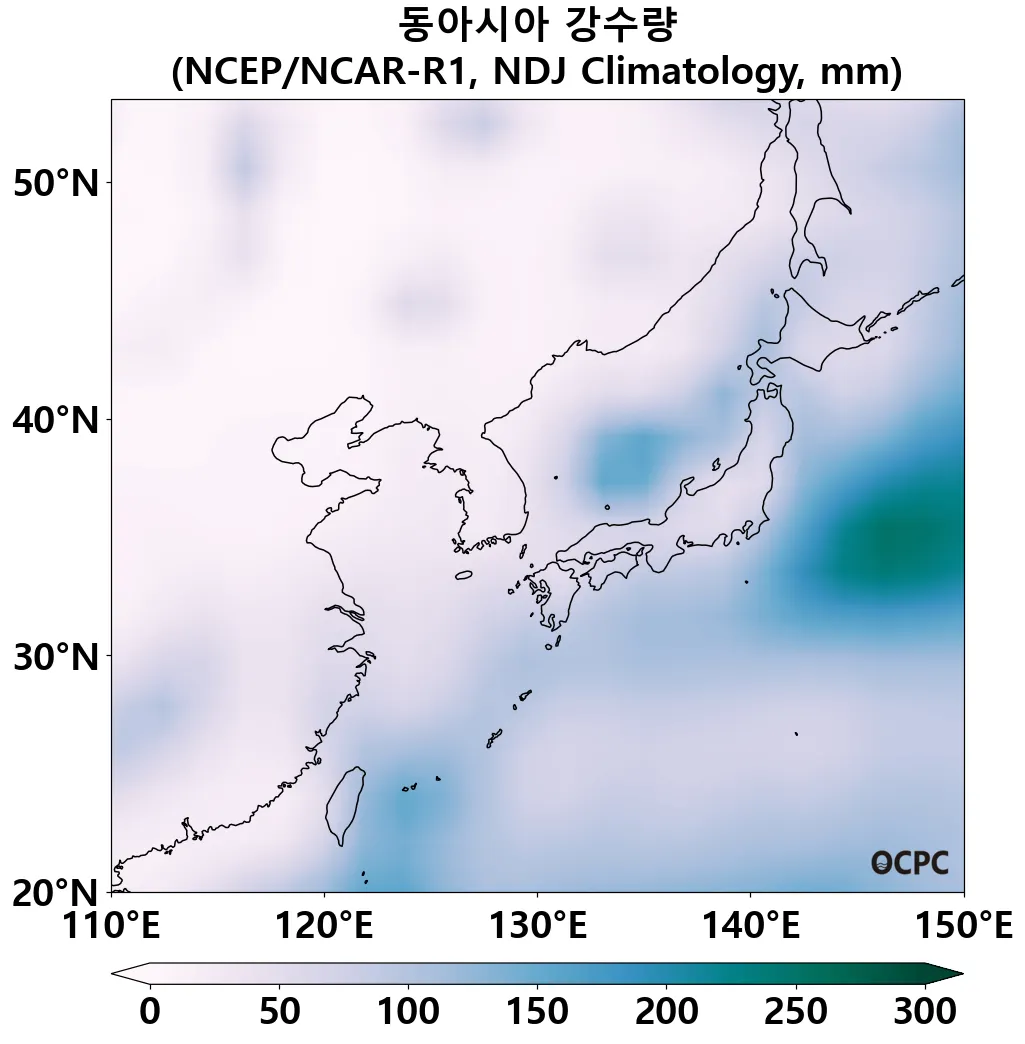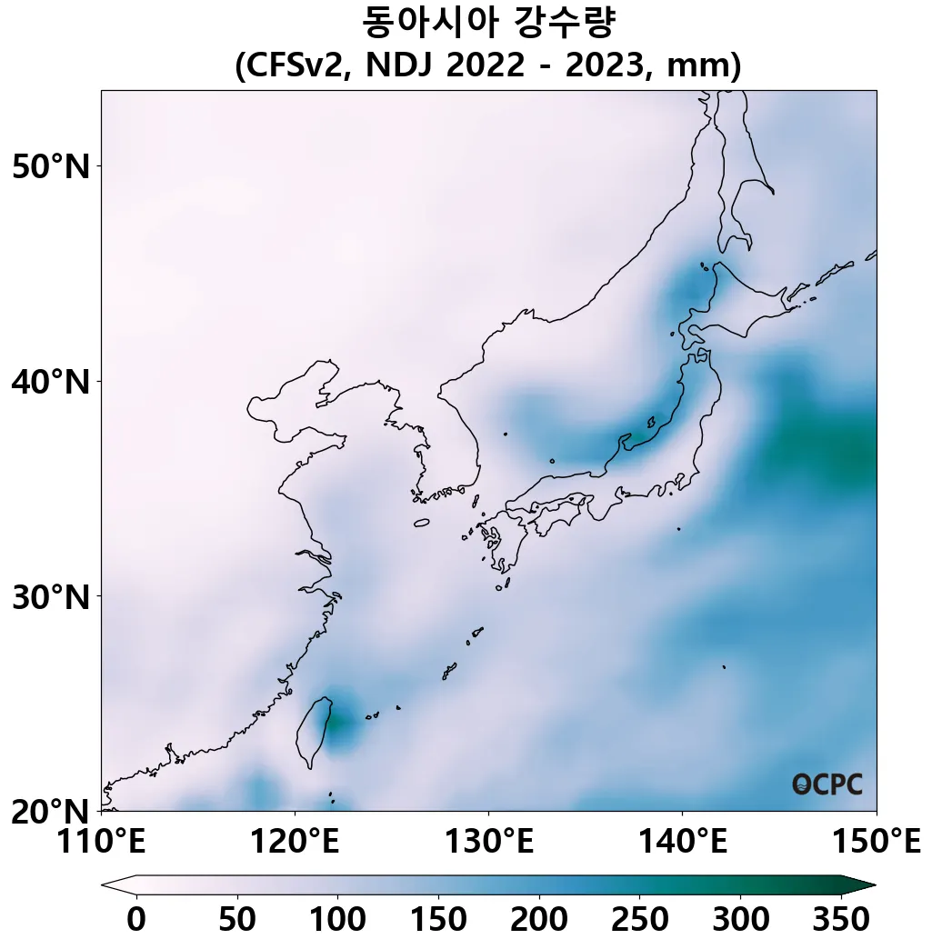 A. 동아시아 강수량 전망(2022년 11월~2023년 1월 평균)