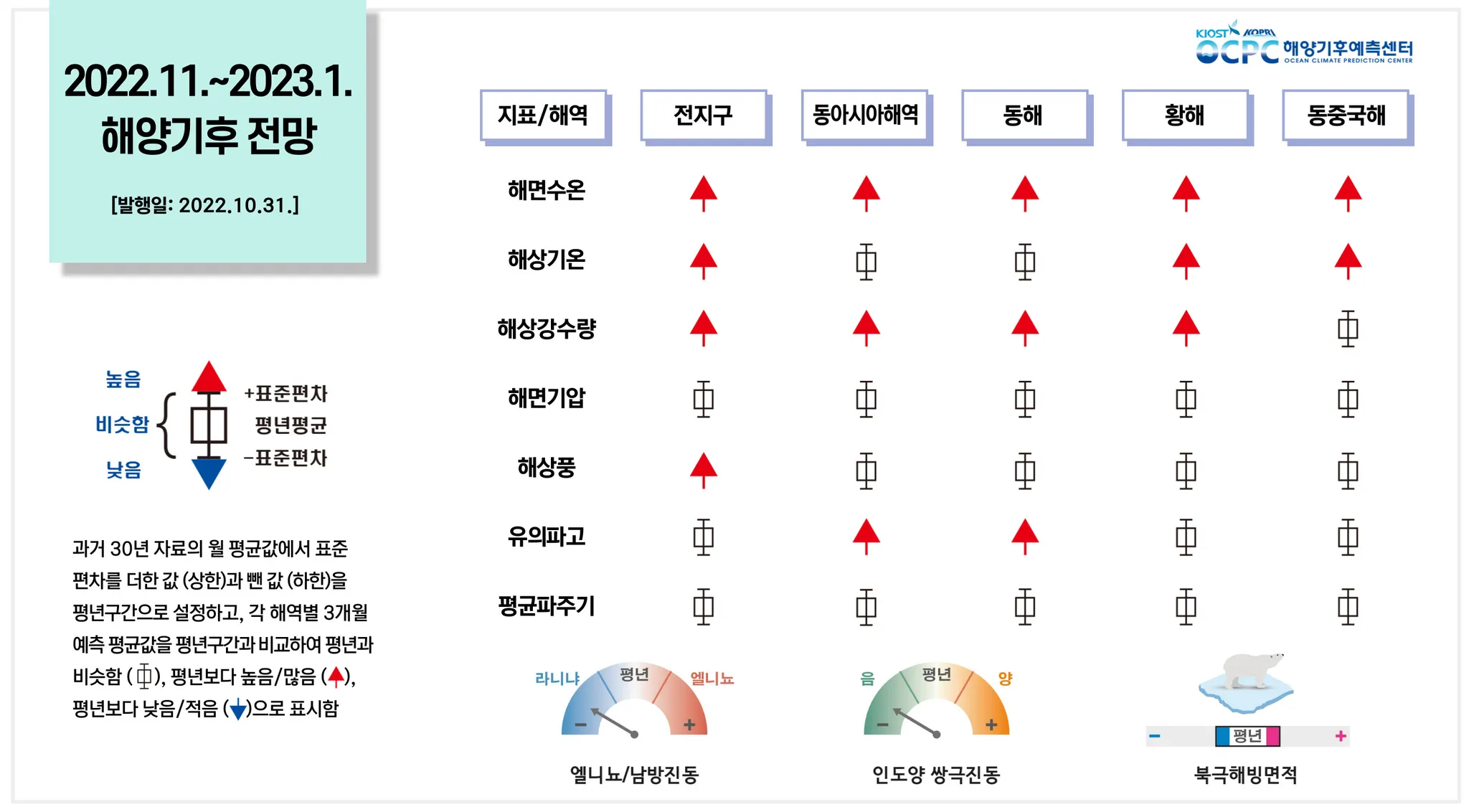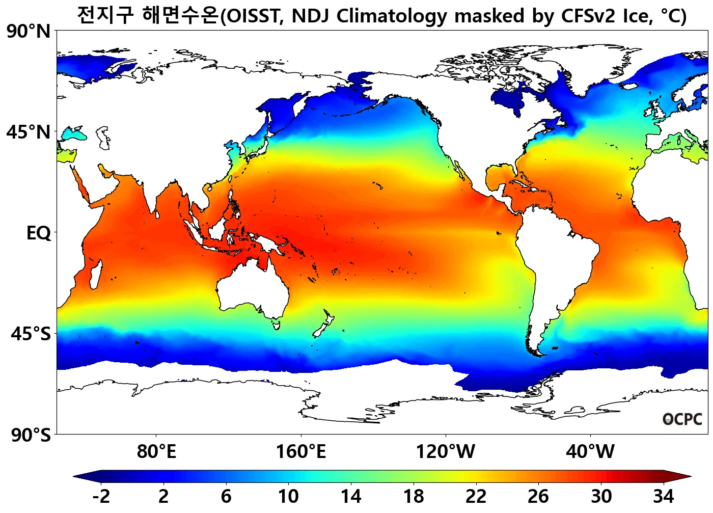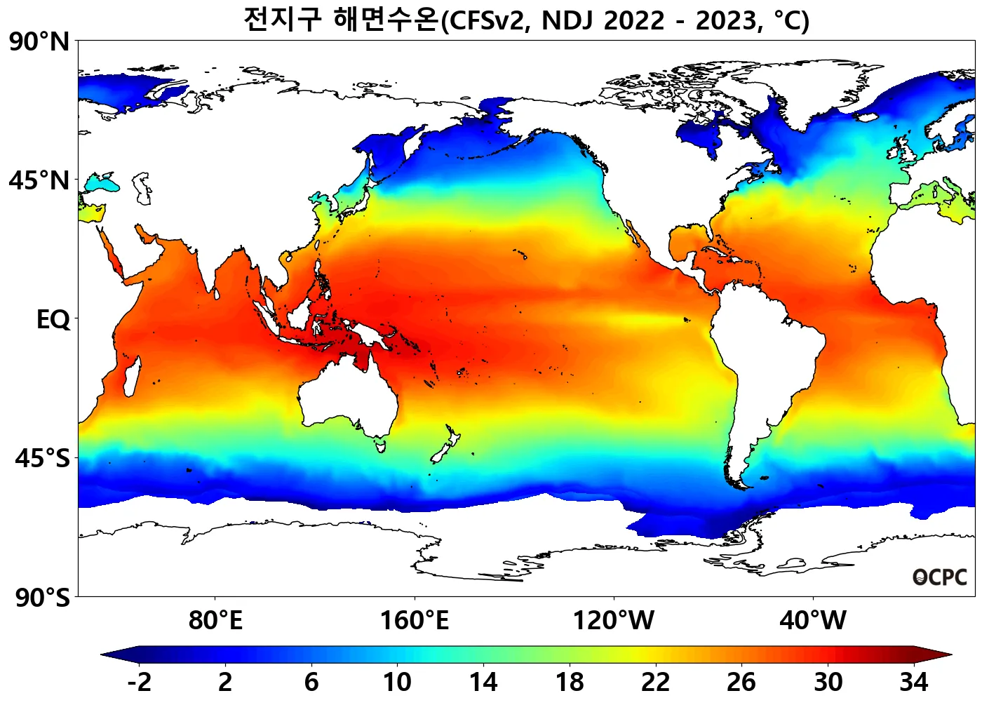 전지구 평균 해상기온은 평년보다 높겠습니다.