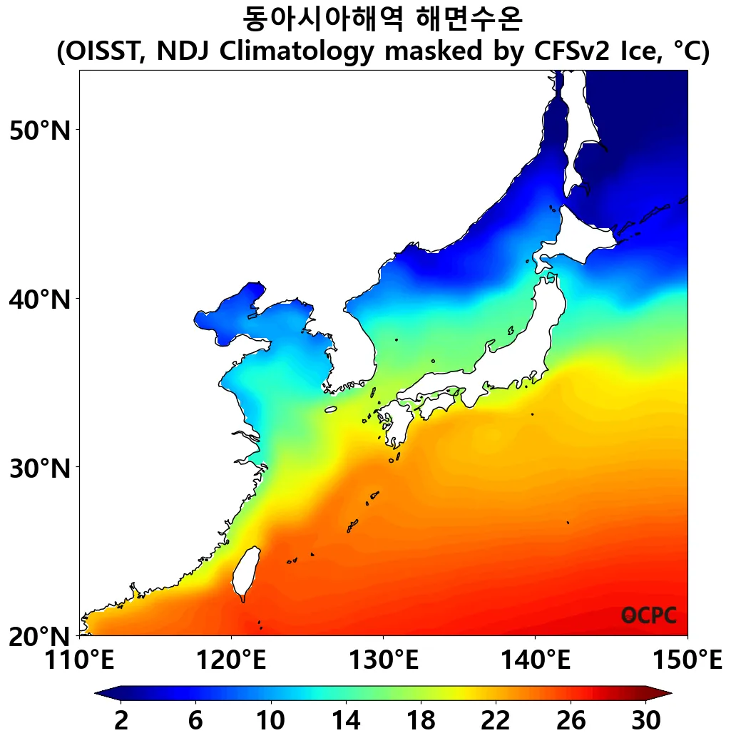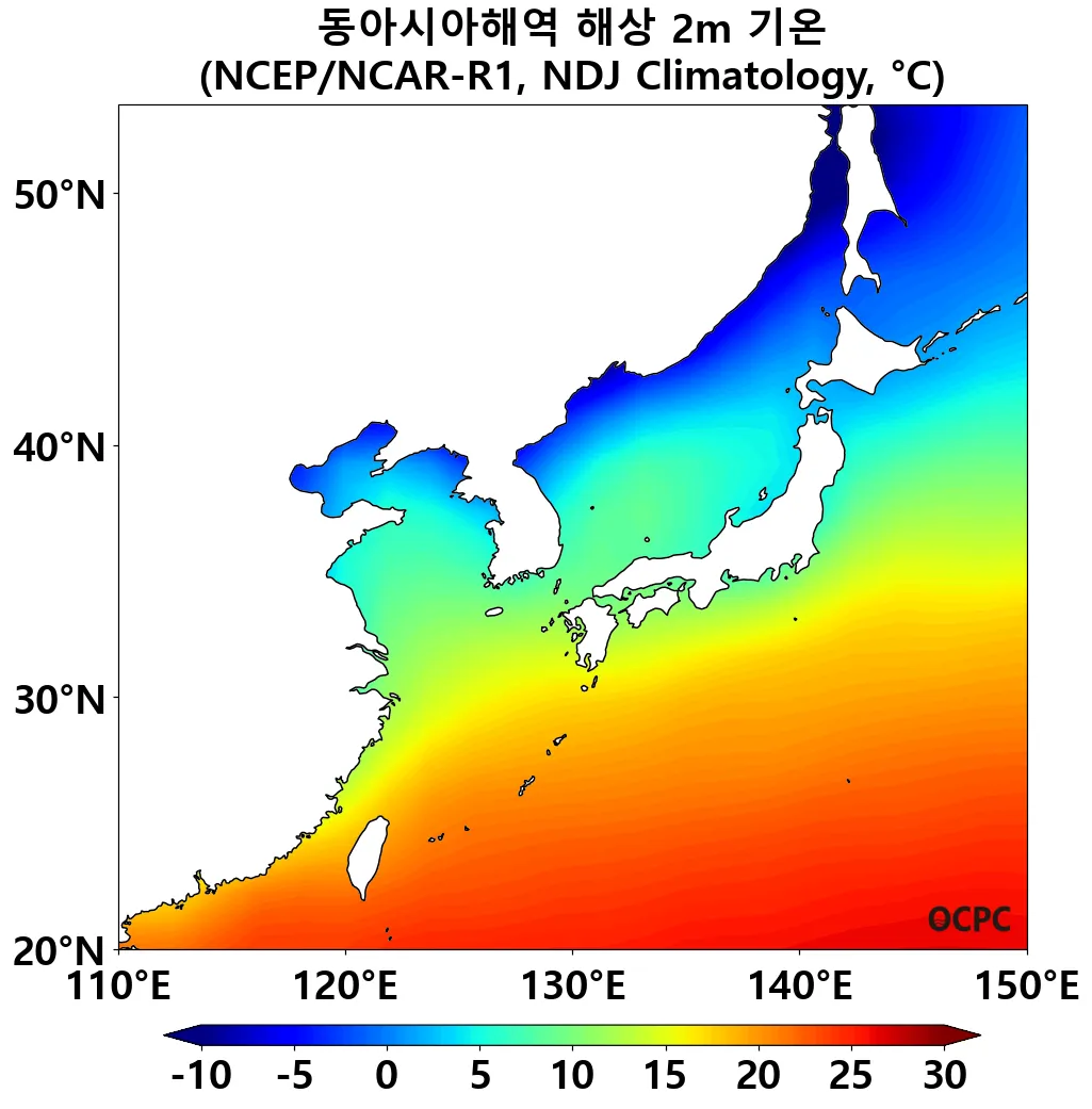 B. 동아시아해역 해상기온(평년 11~1월 평균)