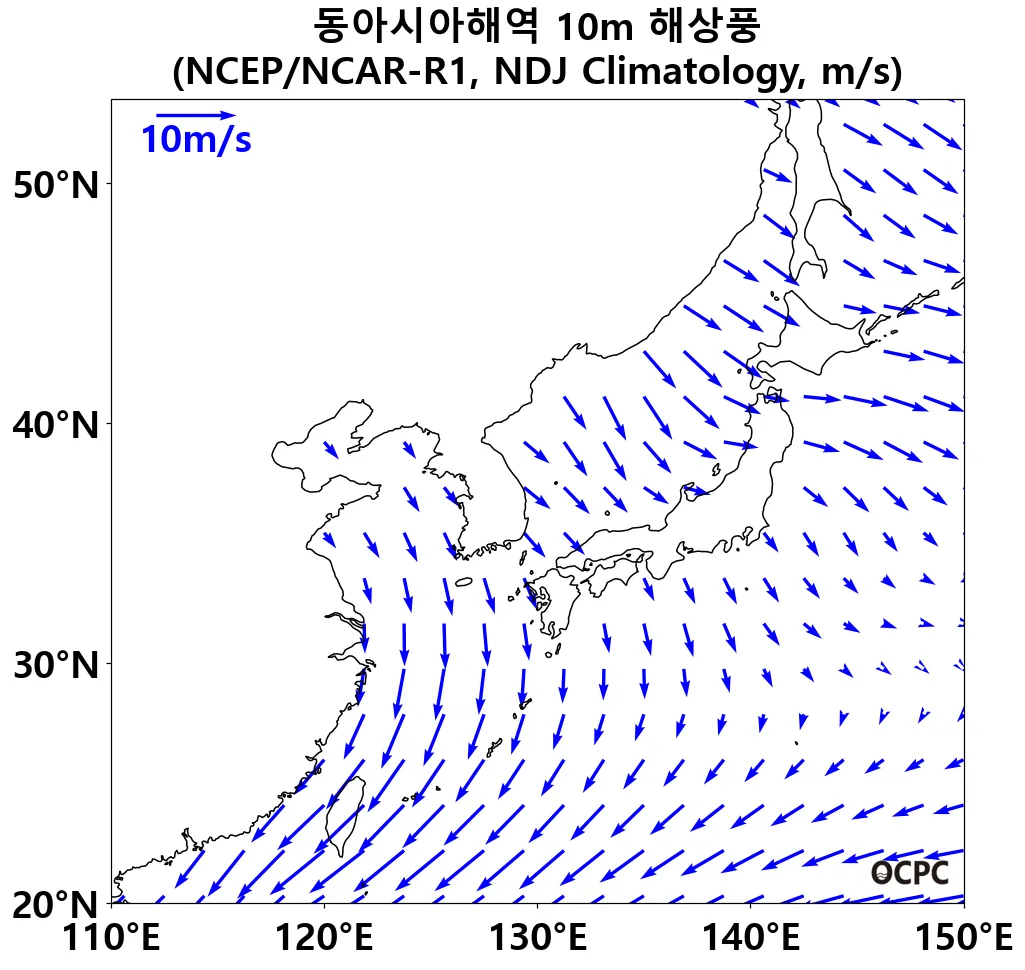 B. 동아시아해역 해상풍(평년 11~1월 평균)