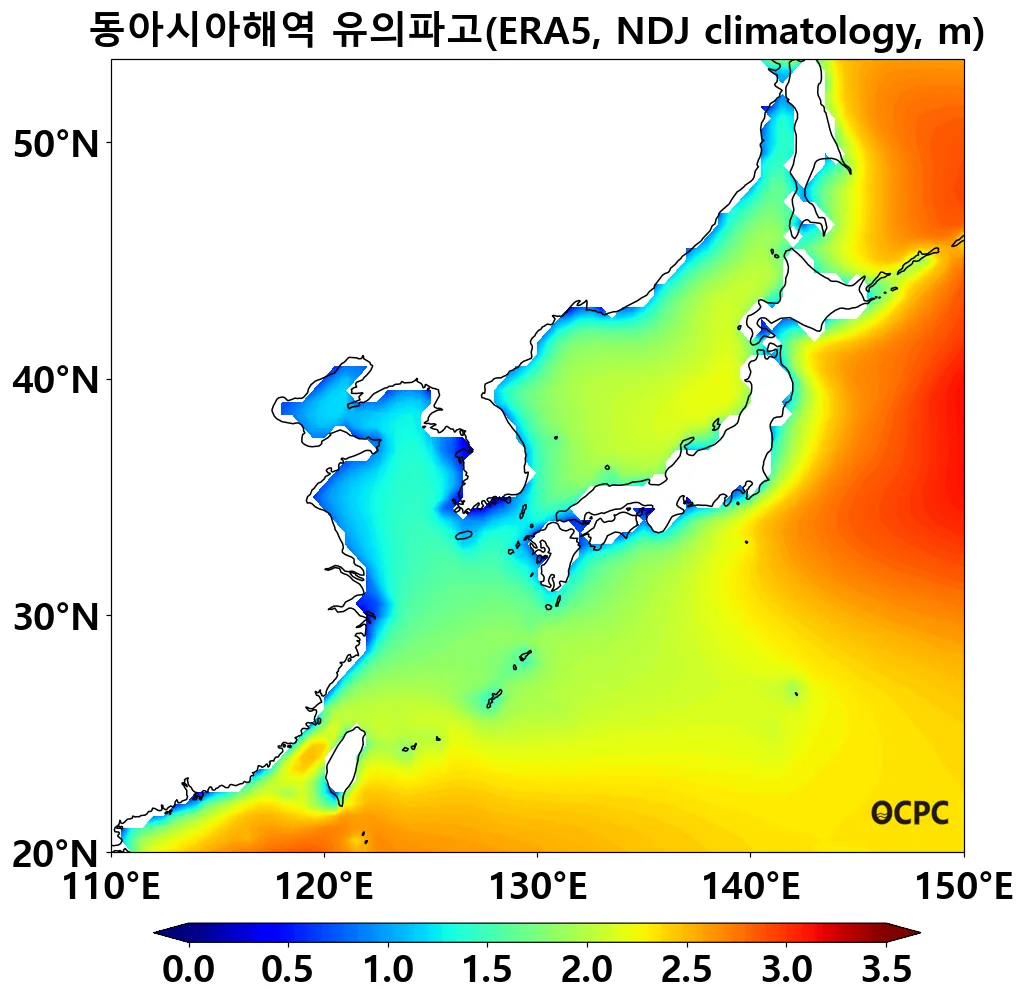 B. 동아시아해역 유의파고(평년 11~1월 평균)