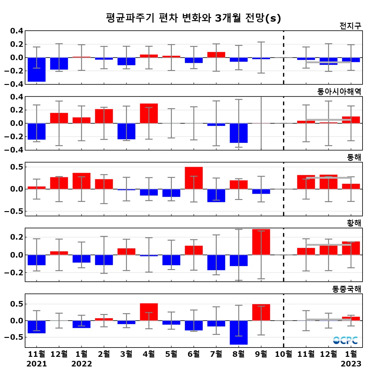 A. 전지구 평균파주기 전망(2022년 11월~2023년 1월 평균)