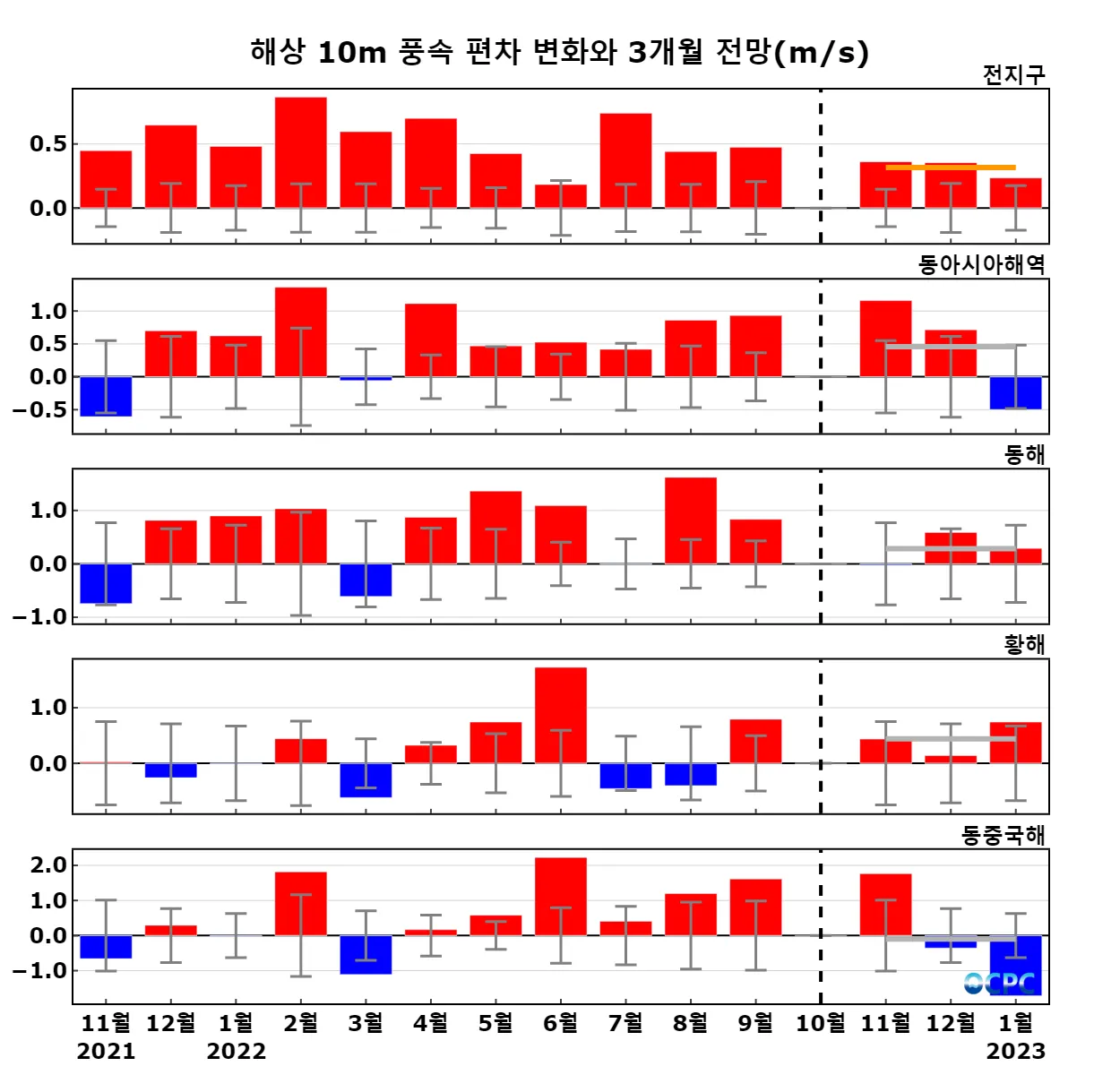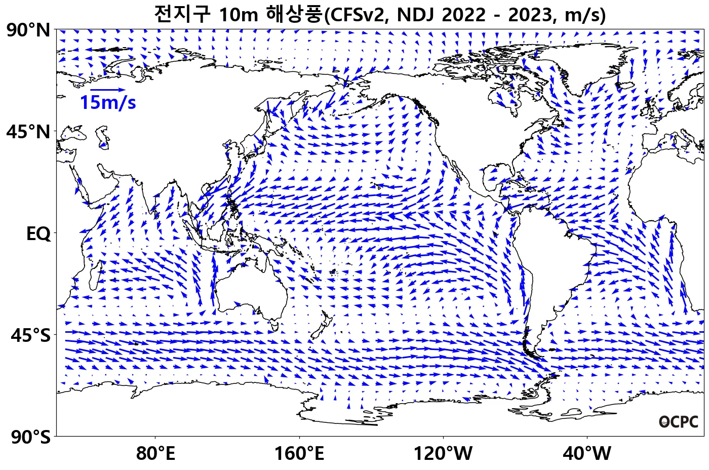 A. 전지구 해상풍 전망(2022년 11월~2023년 1월 평균)