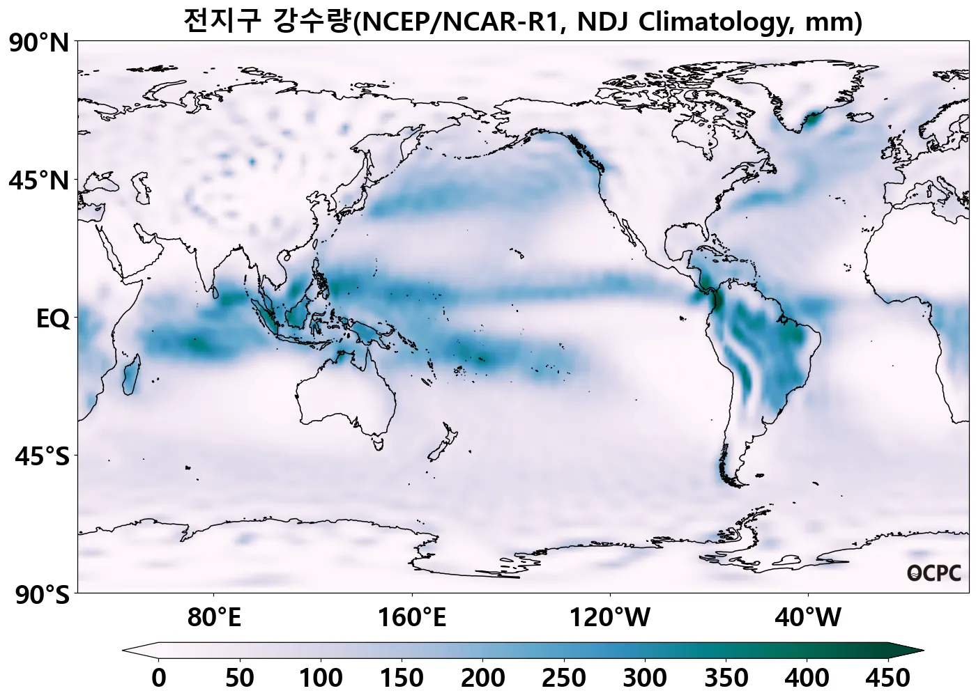 전지구 평균 해상강수량은 평년보다 많겠습니다.