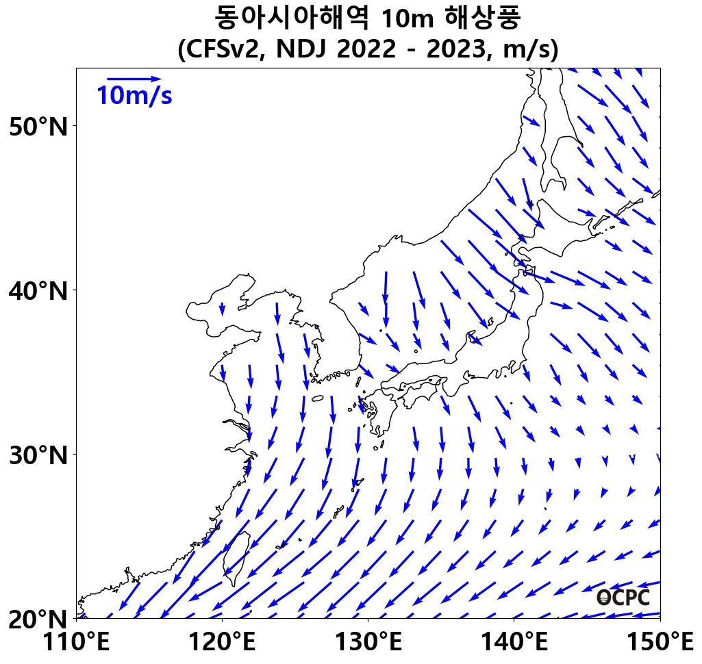 A. 동아시아해역 해상풍 전망(2022년 11월~2023년 1월 평균)