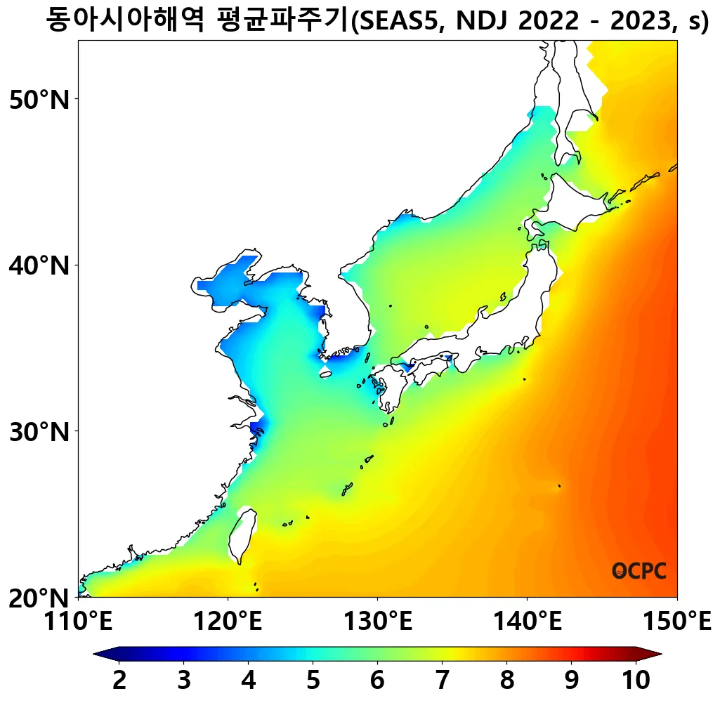 A. 동아시아해역 평균파주기 전망(2022년 11월~2023년 1월 평균)