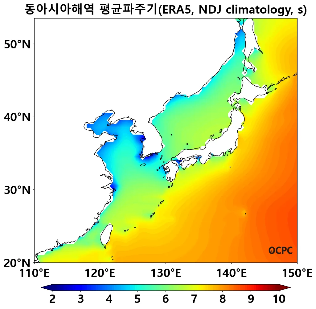 B. 동아시아해역 평균파주기(평년 11~1월 평균)