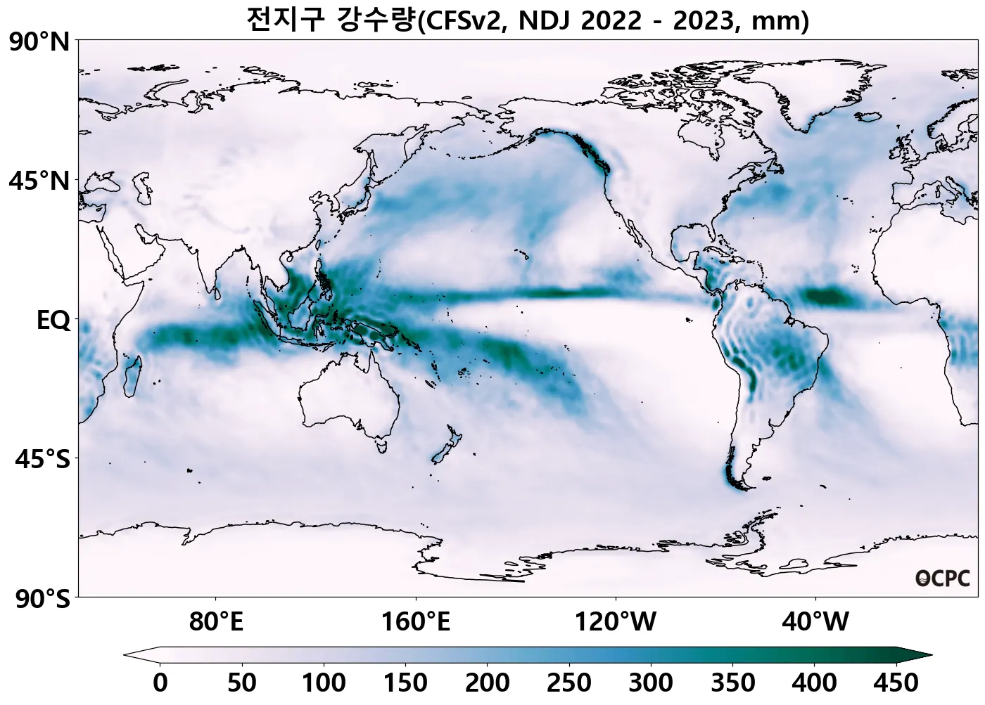 A. 전지구 강수량 전망(2022년 11월~2023년 1월 평균)