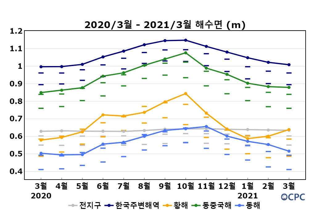 2021년 3월 해수면 높이