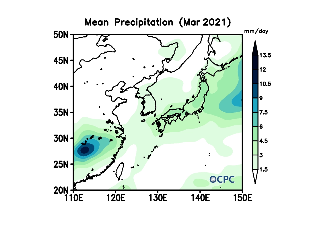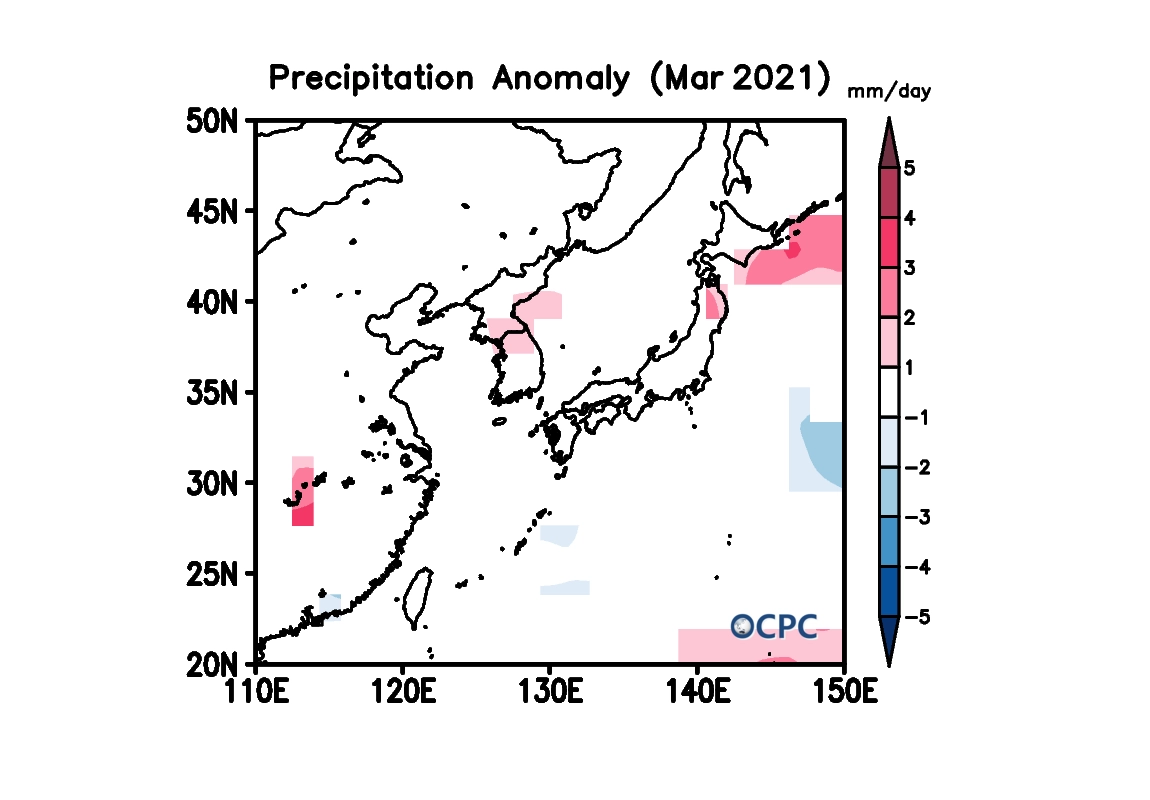 2021년 3월 한국주변해역 해상강수량
