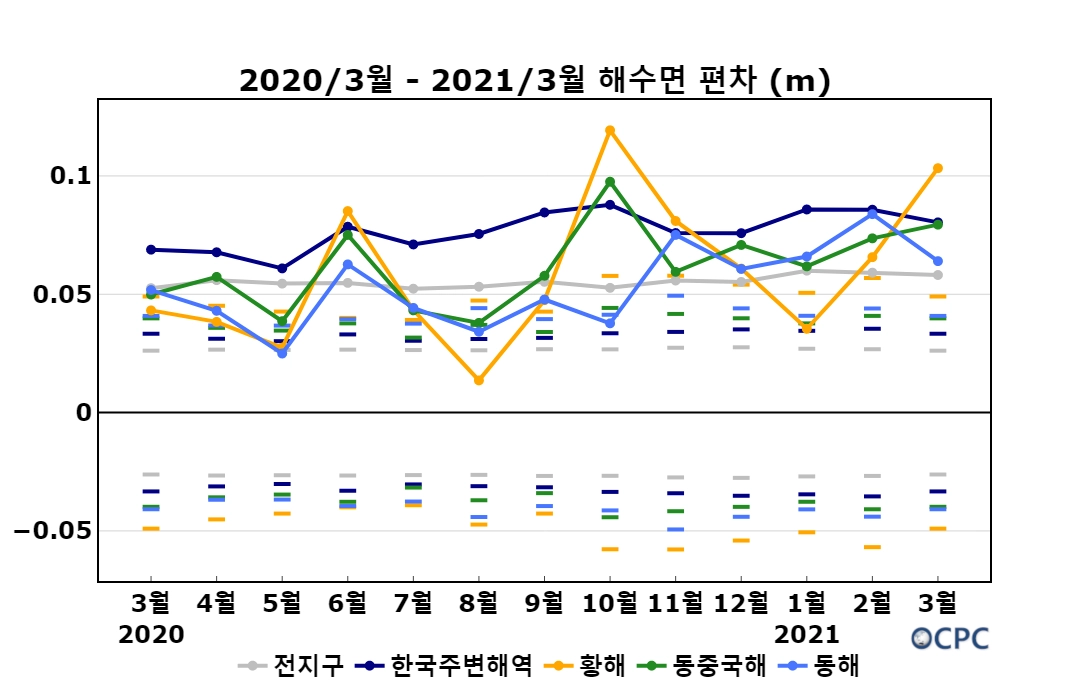 2021년 3월 한국주변해역 해수면 높이