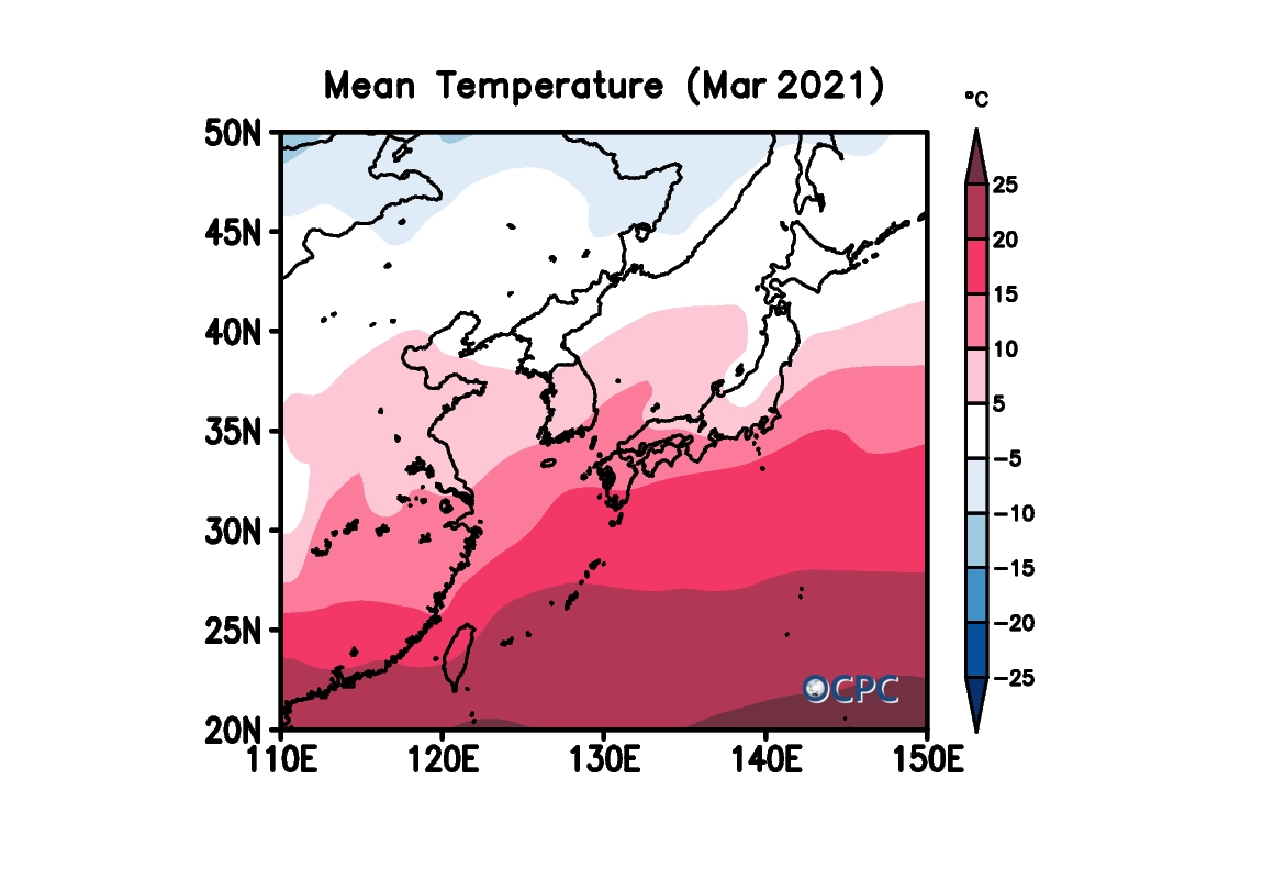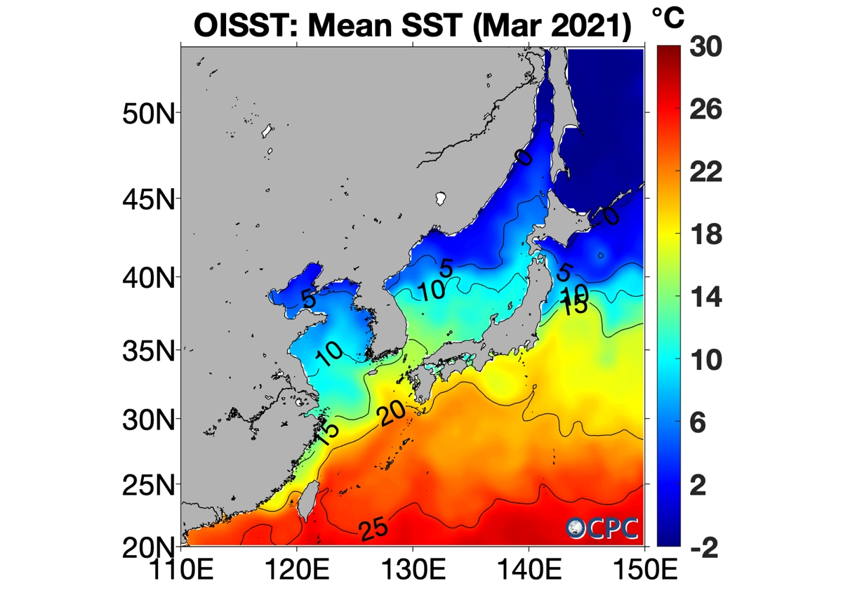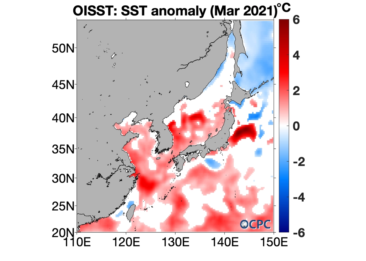 2021년 3월 한국주변해역 해상기온