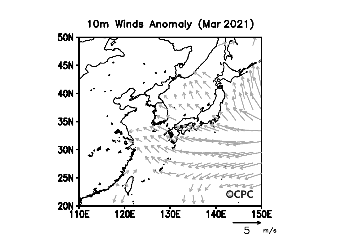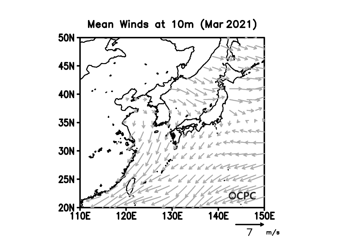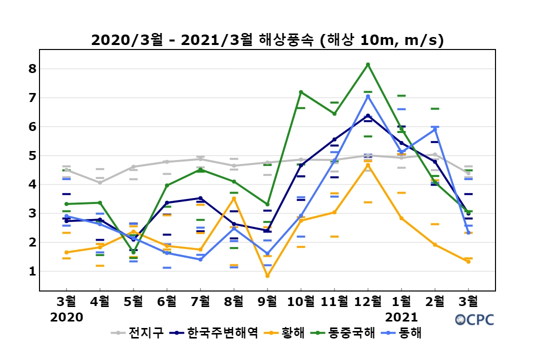 2021년 3월 한국주변해역 해상풍