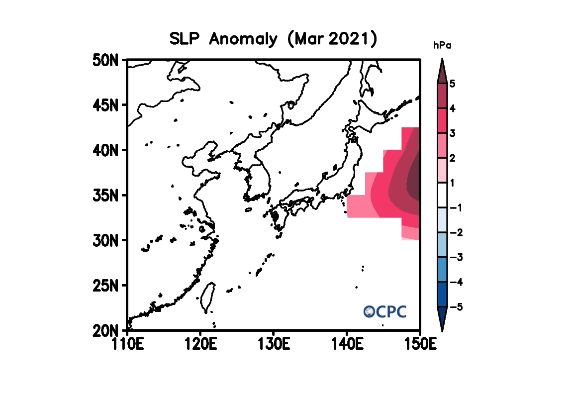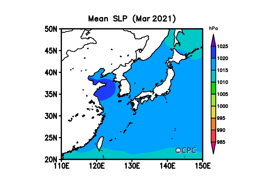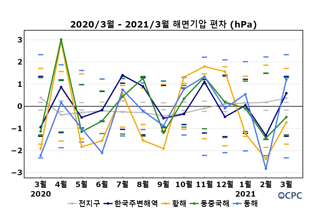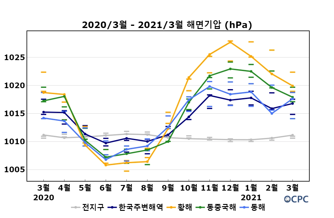 2021년 3월 한국주변해역 해면기압
