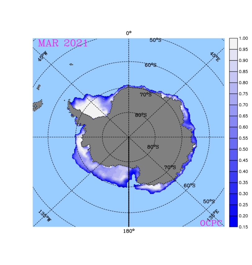2021년 3월 남극 해빙면적 (해빙농도 15% 이상인 해역) 분포