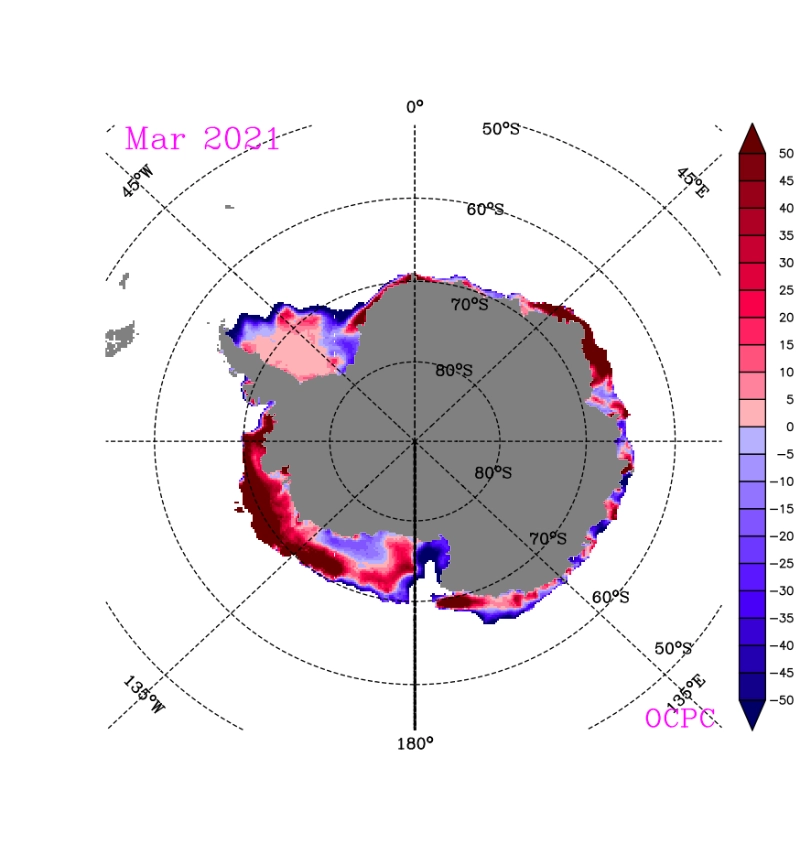 2021년 3월 남극 해빙농도 평년 대비 편차(%)
