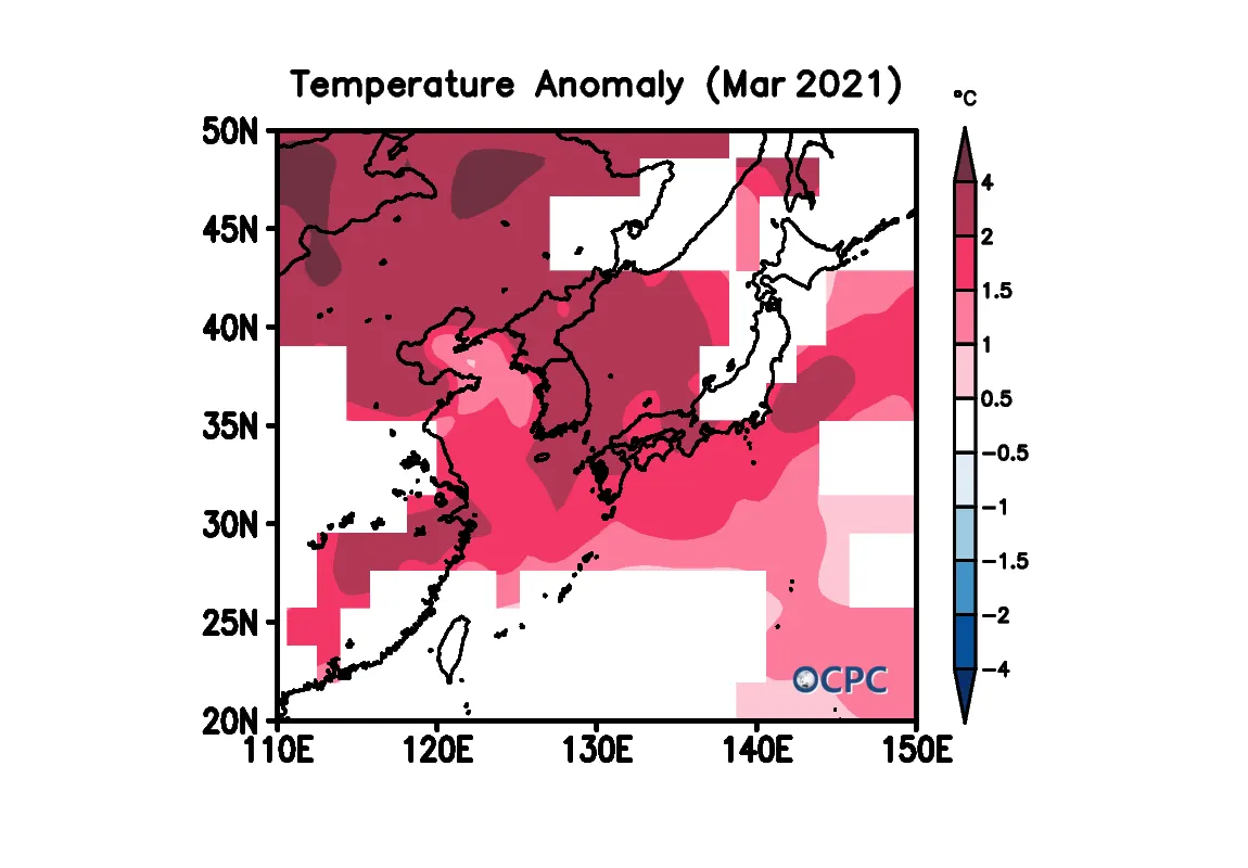 2021년 3월 한국주변해역 해상기온 평년대비 표준편차 초과 해역
