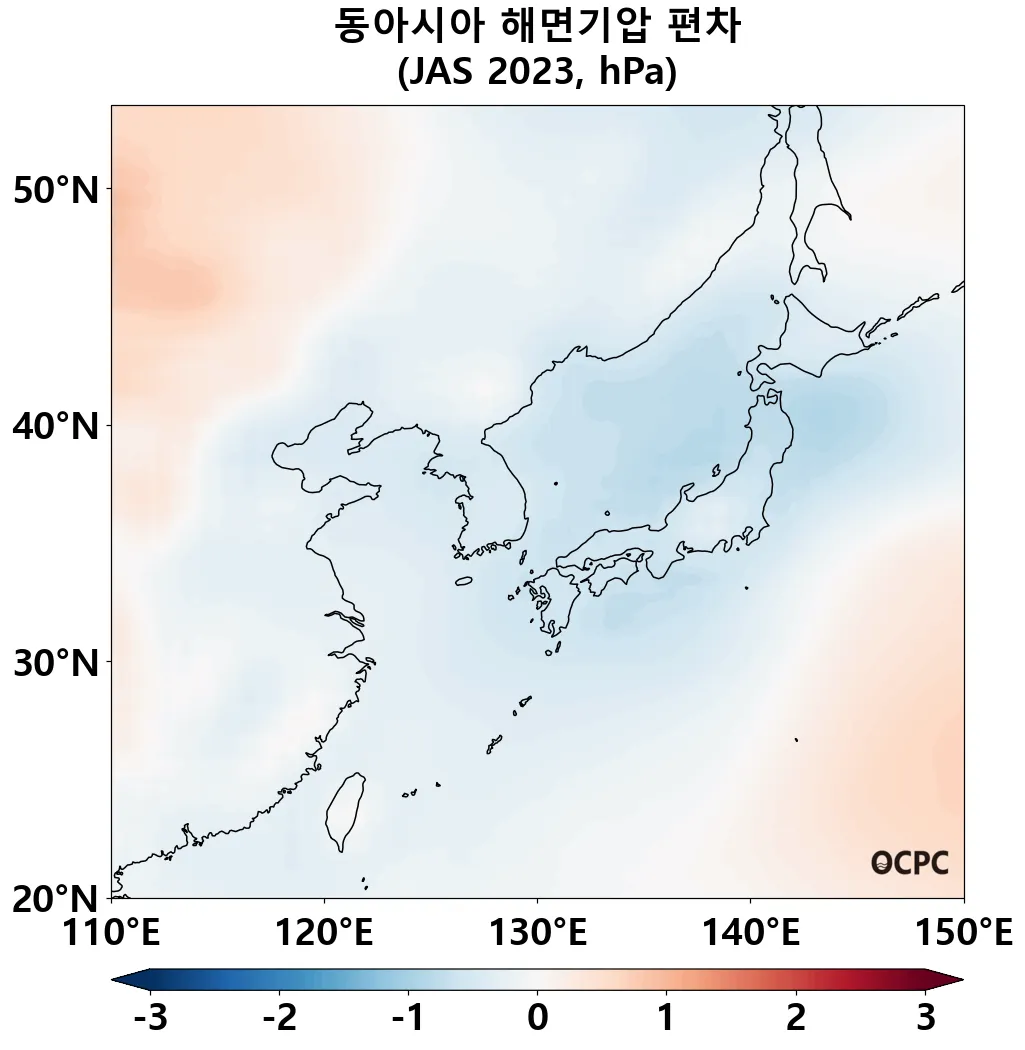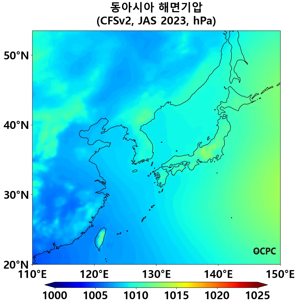 A. 동아시아 해면기압 전망(2023년 7~9월 평균)