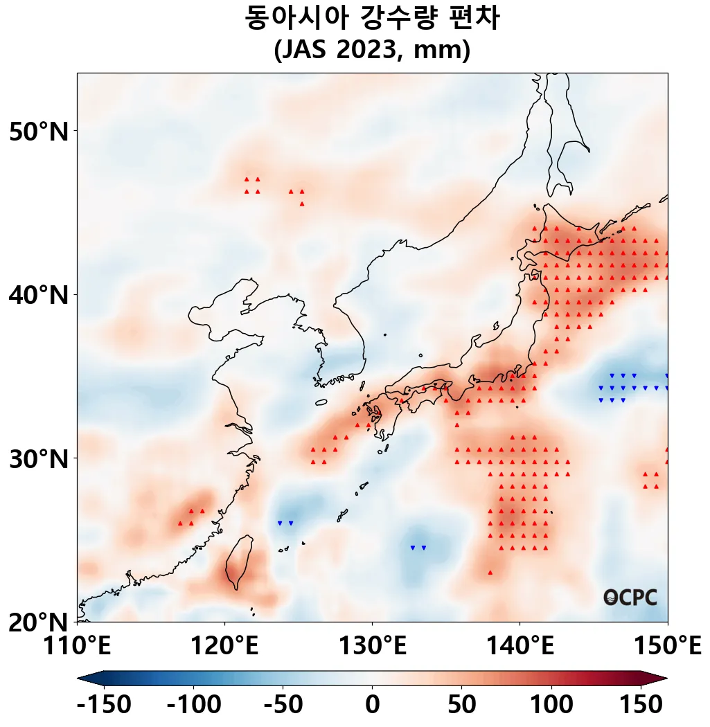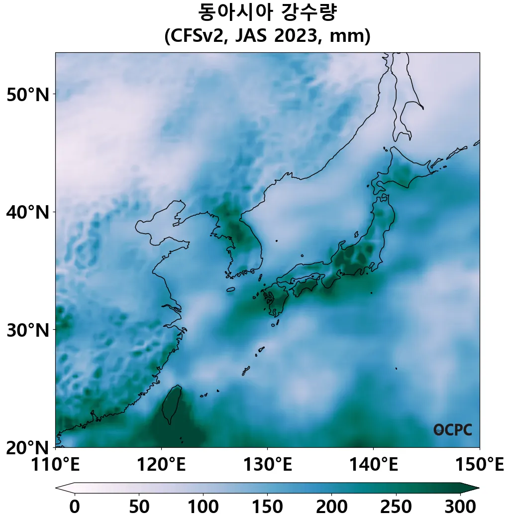 A. 동아시아 강수량 전망(2023년 7~9월 평균)
