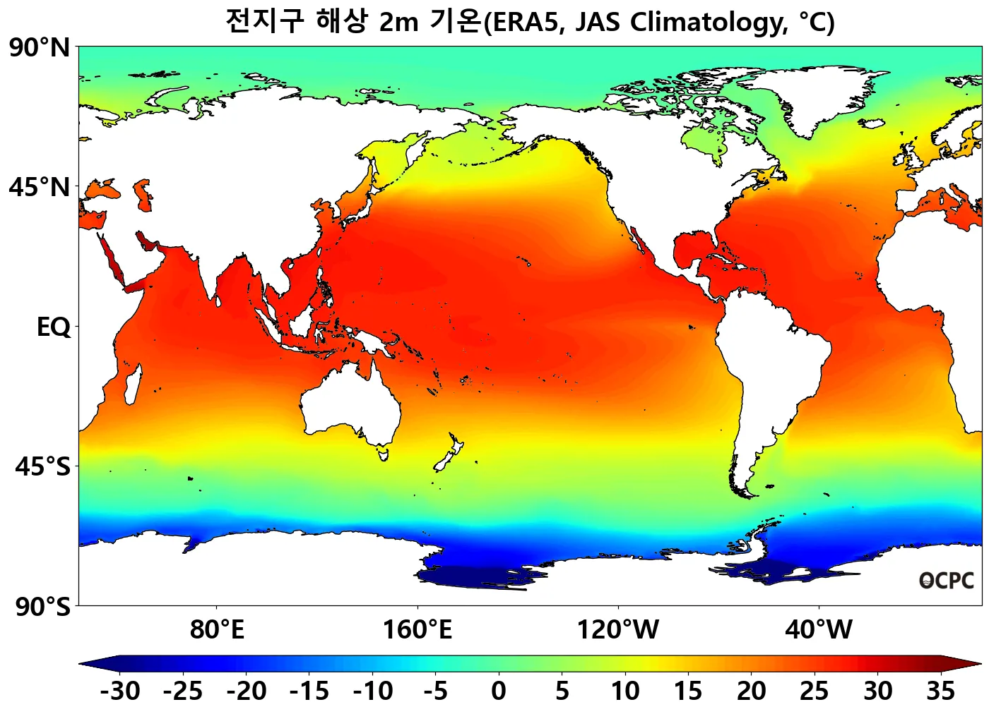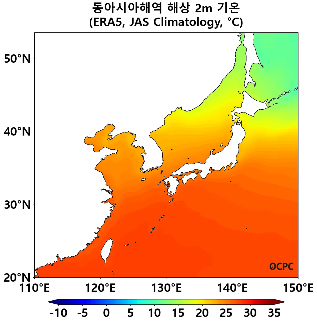 B. 동아시아해역 해상기온(평년 7~9월 평균)