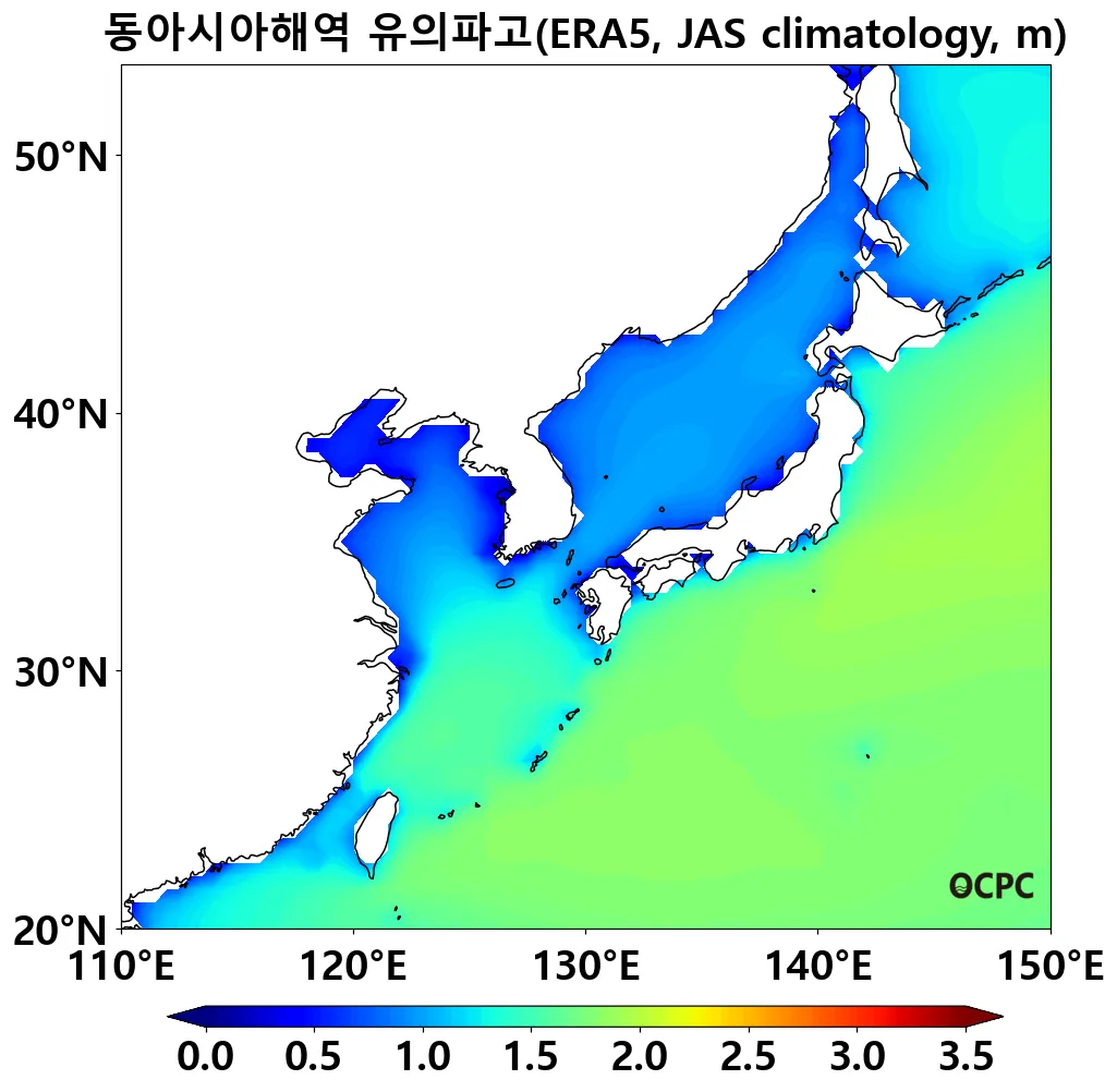 B. 동아시아해역 유의파고(평년 7~9월 평균)