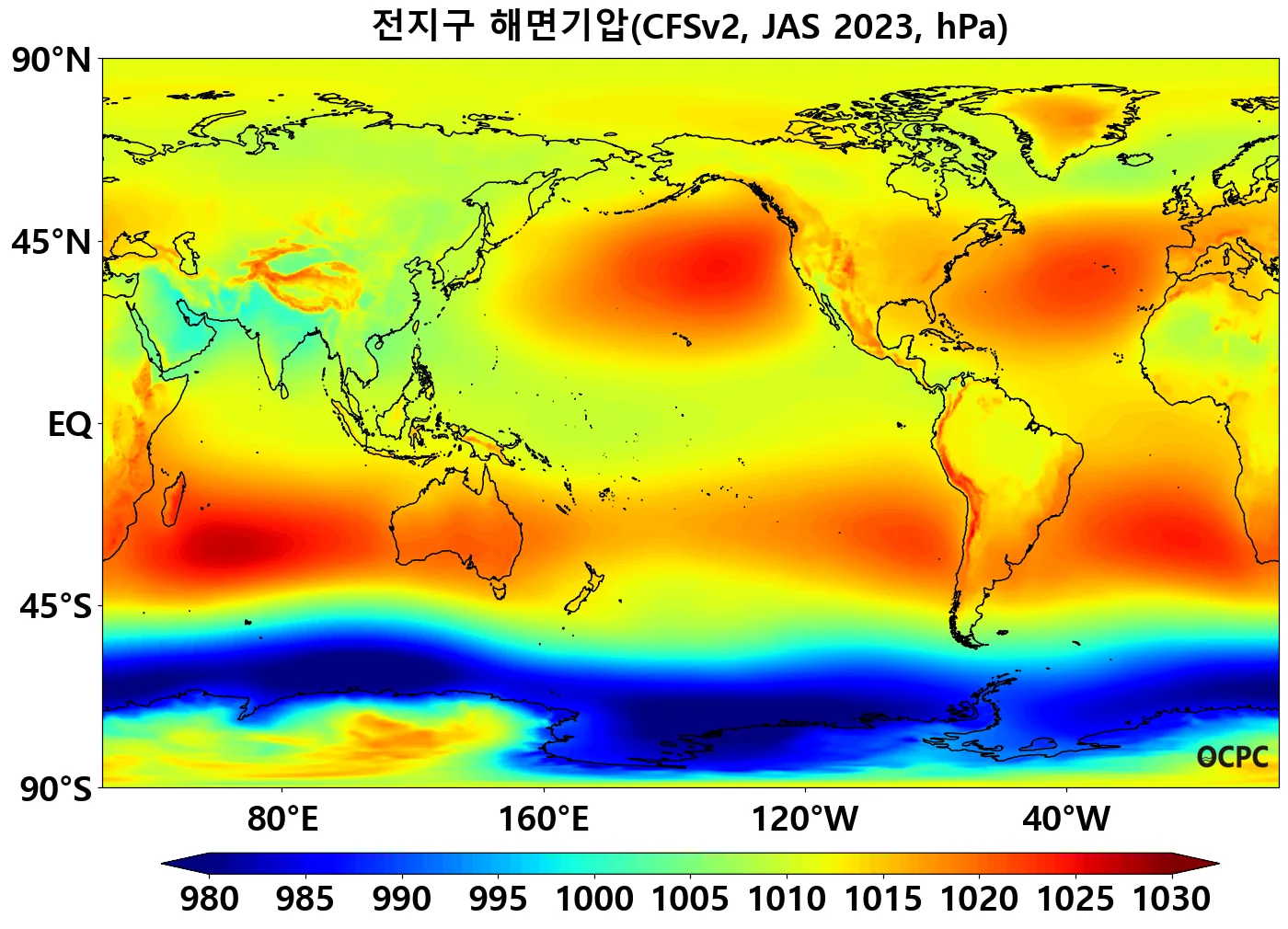 A. 전지구 해면기압 전망(2023년 7~9월 평균)