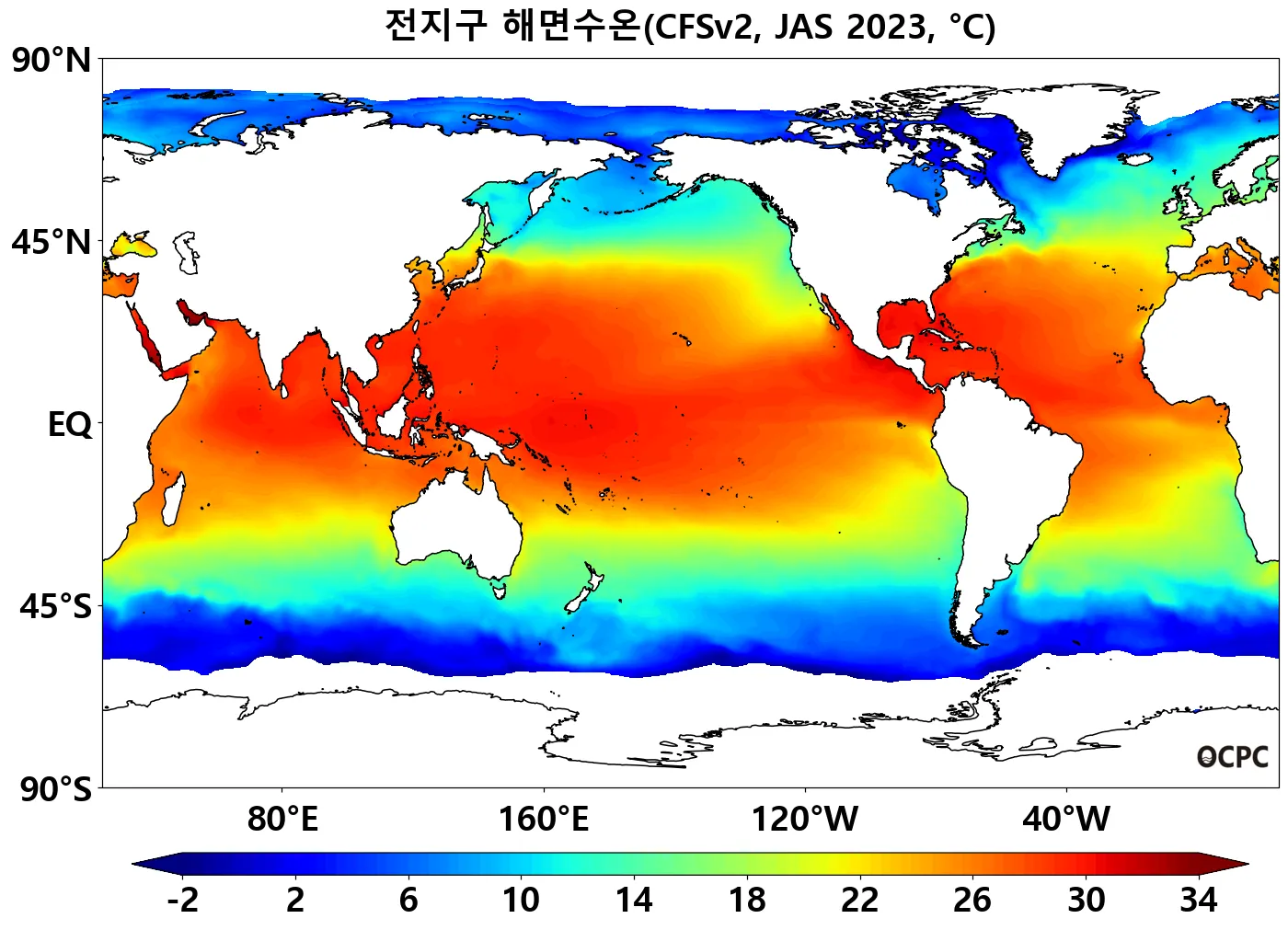 A. 전지구 해면수온 전망(2023년 7~9월 평균)