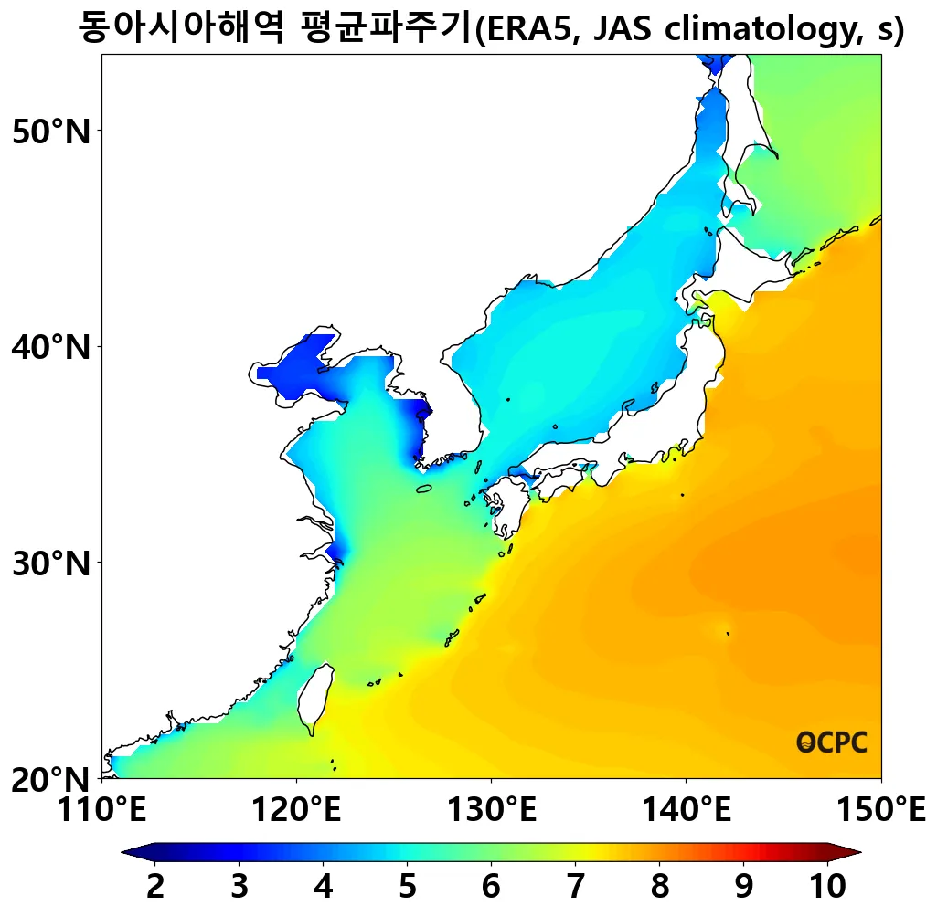 B. 동아시아해역 평균파주기(평년 7~9월 평균)