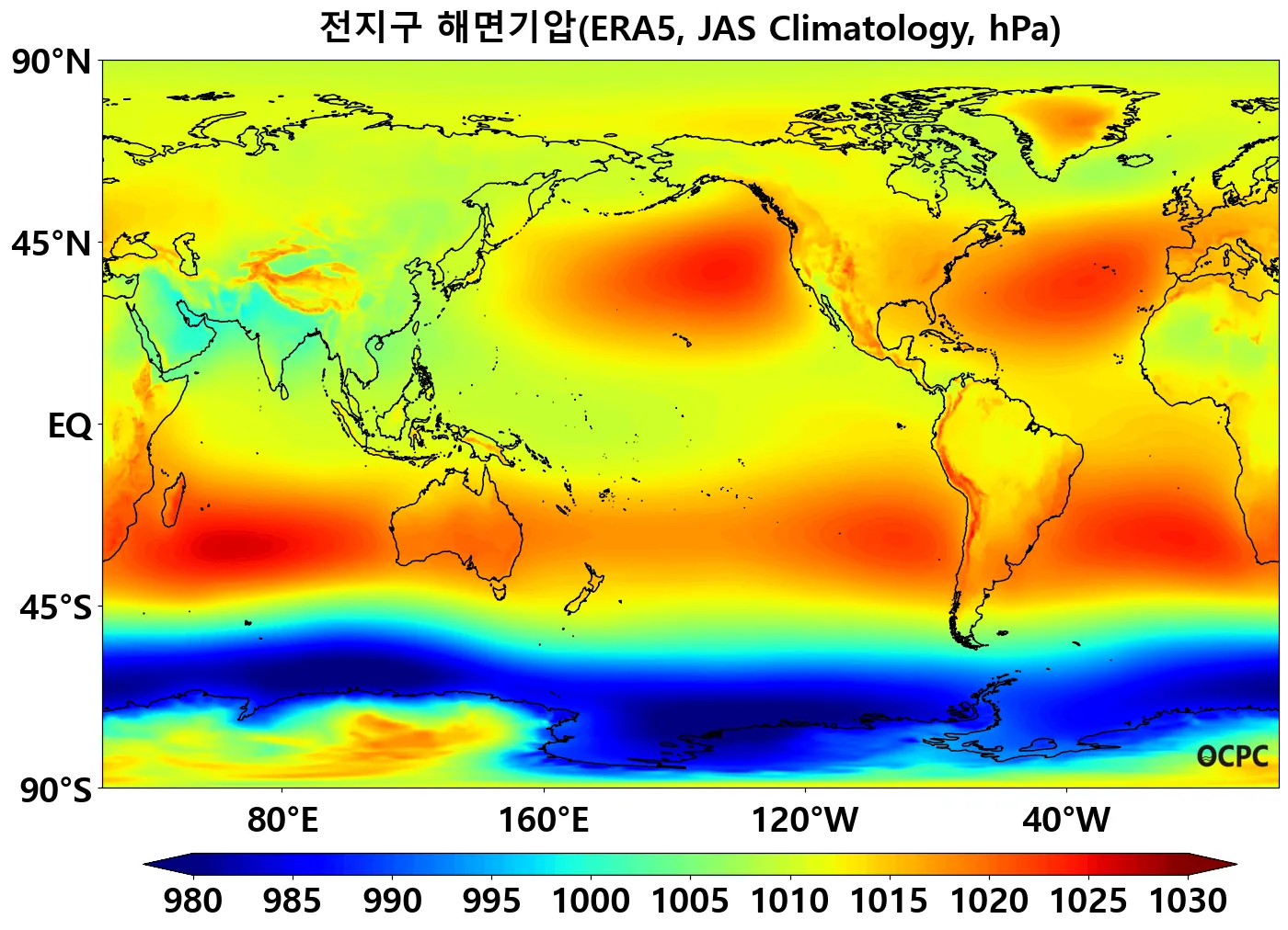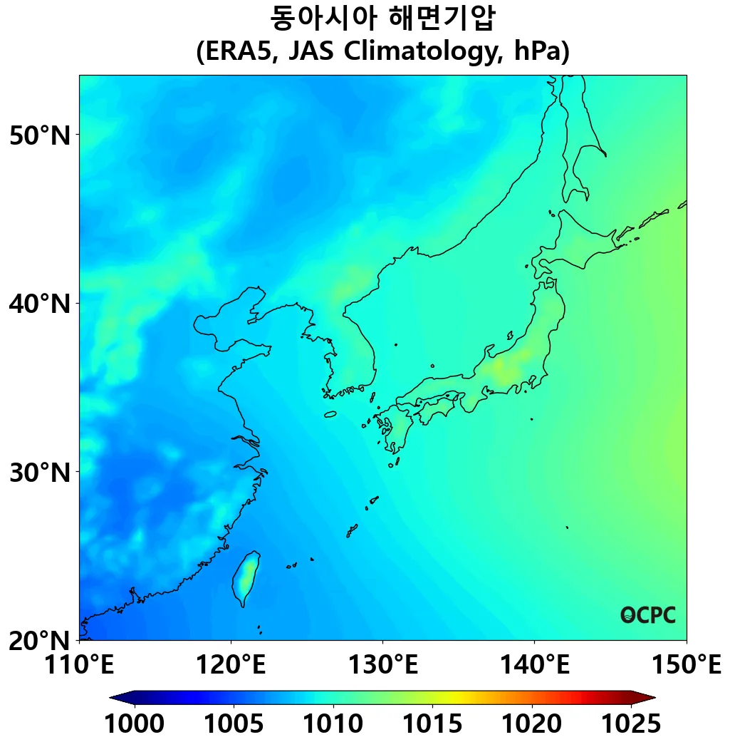B. 동아시아 해면기압(평년 7~9월 평균)
