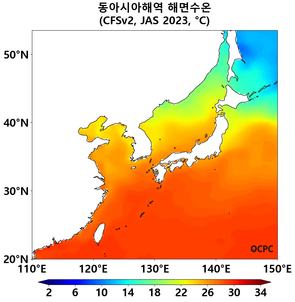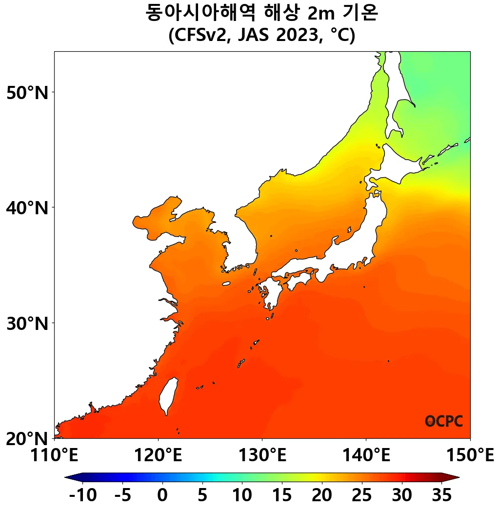 A. 동아시아해역 해상기온 전망(2023년 7~9월 평균)