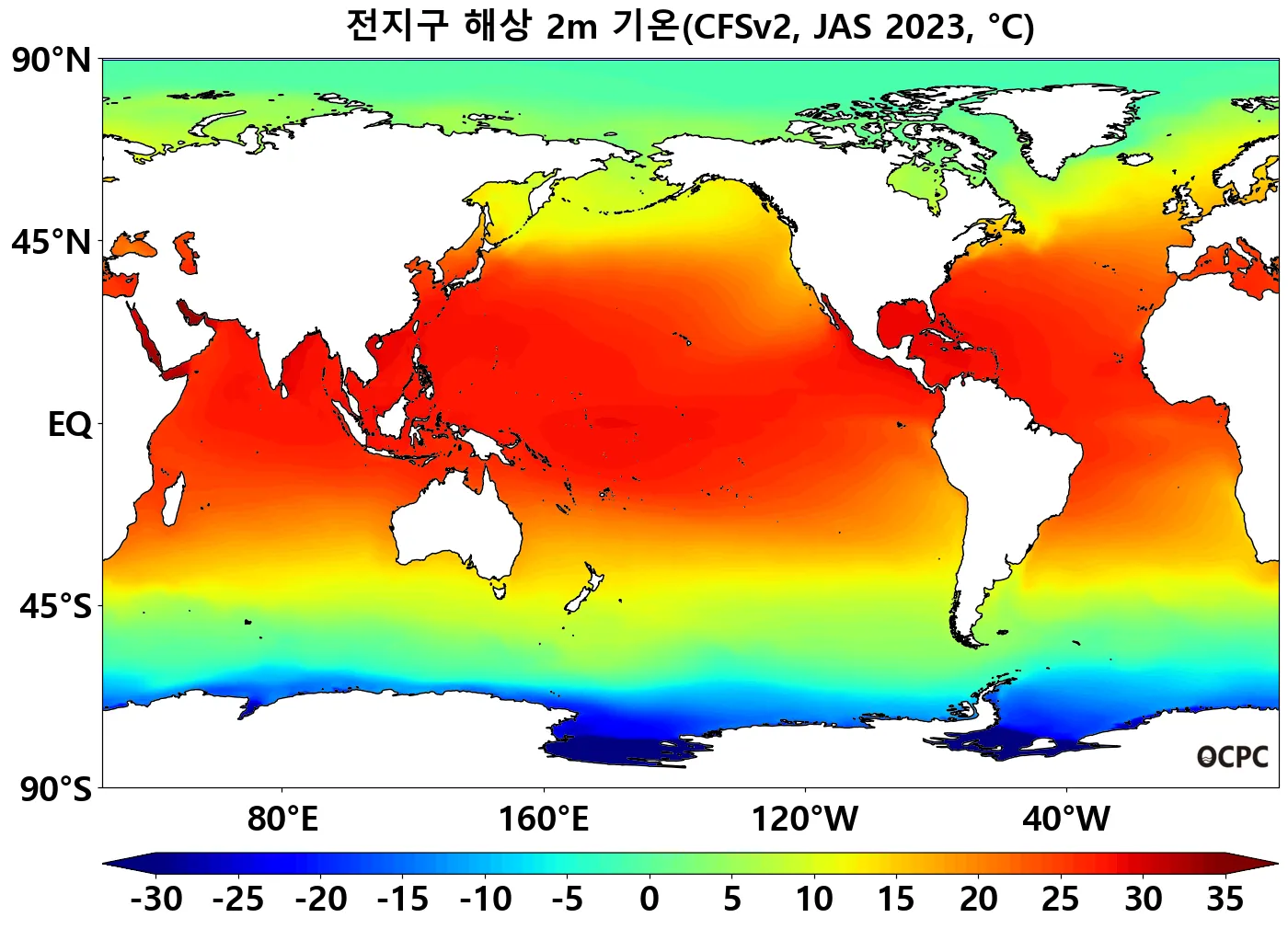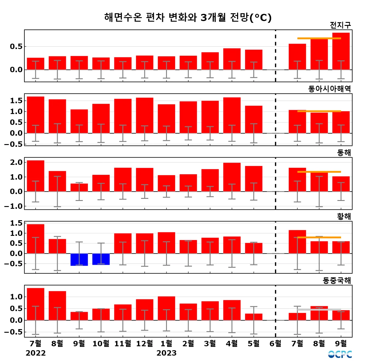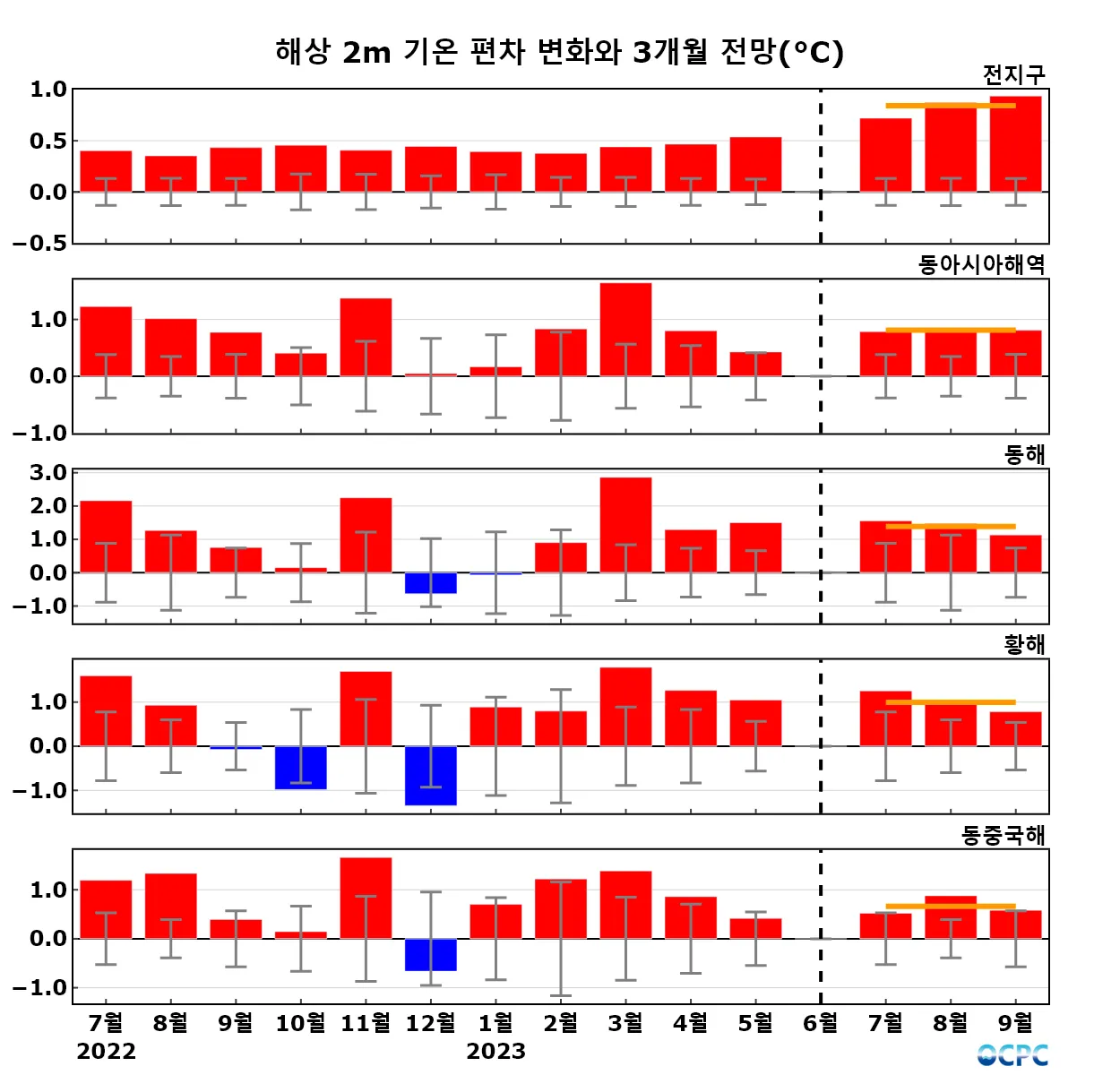 A. 전지구 해상기온 전망(2023년 7~9월 평균)
