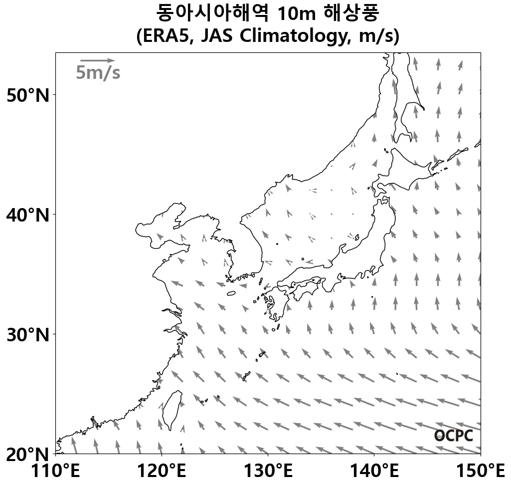 B. 동아시아해역 해상풍(평년 7~9월 평균)
