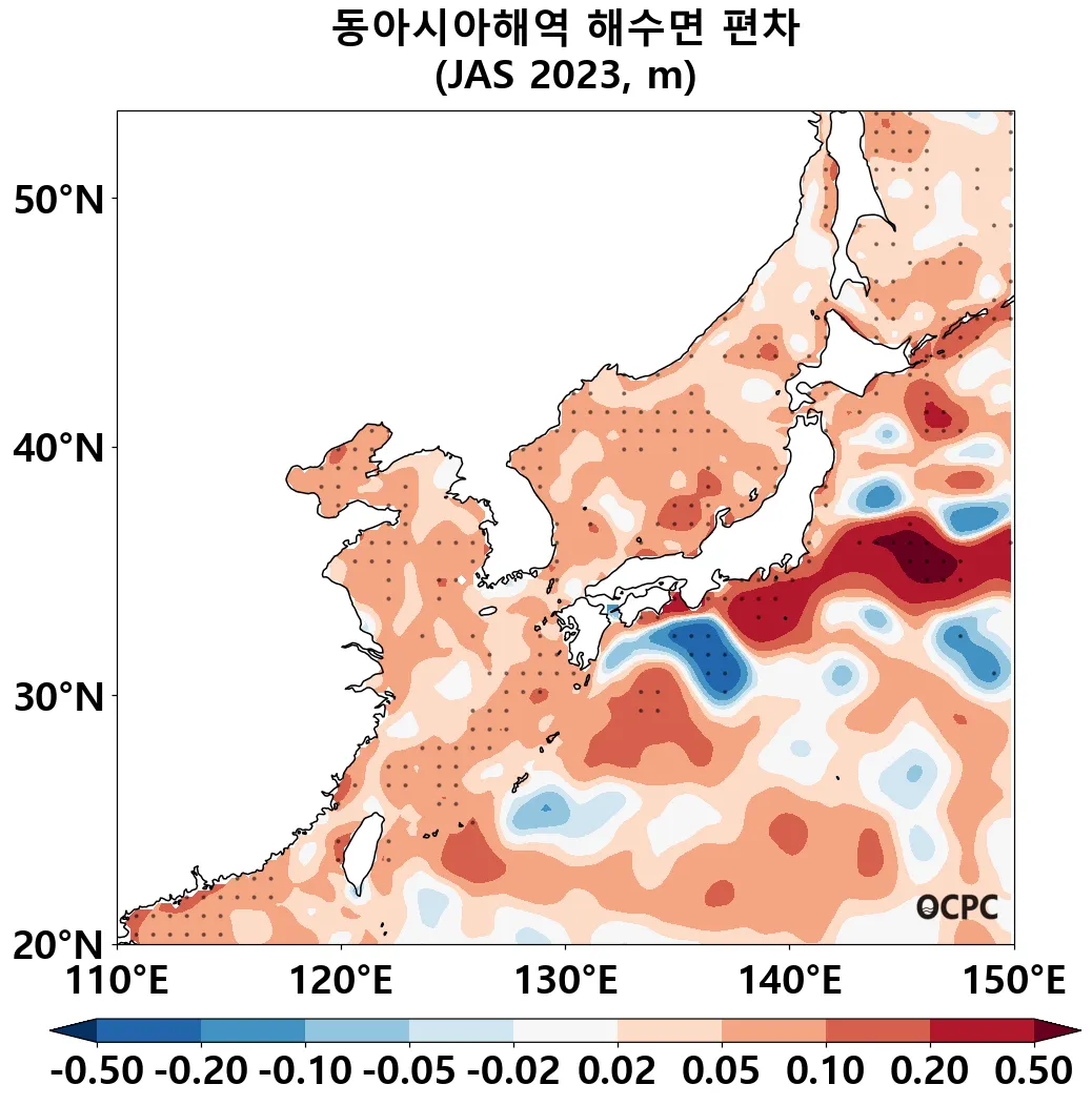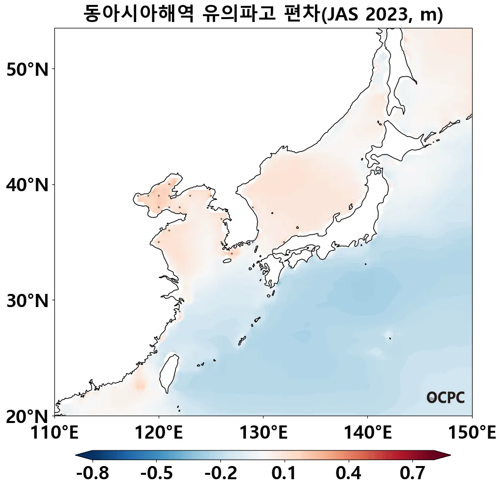 A. 동아시아해역 해수면 전망(2023년 7~9월 평균)