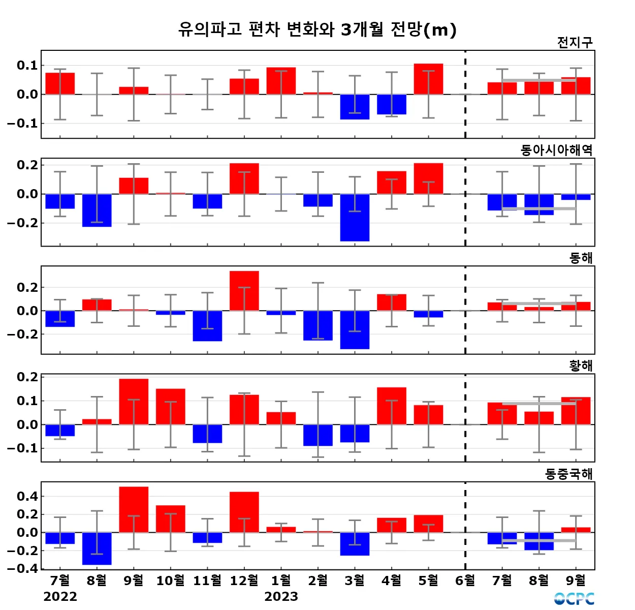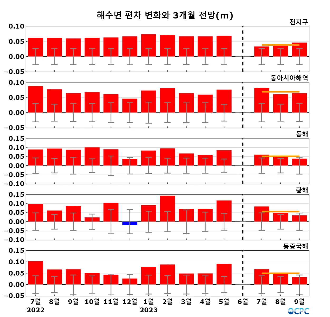 A. 전지구 해수면 전망(2023년 7~9월 평균)