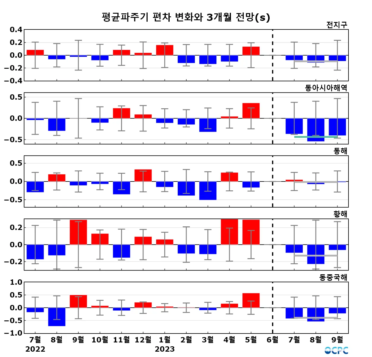 A. 전지구 평균파주기 전망(2023년 7~9월 평균)