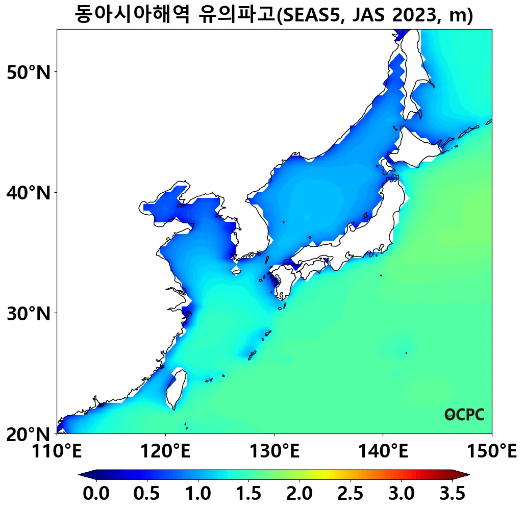 A. 동아시아해역 유의파고 전망(2023년 7~9월 평균)