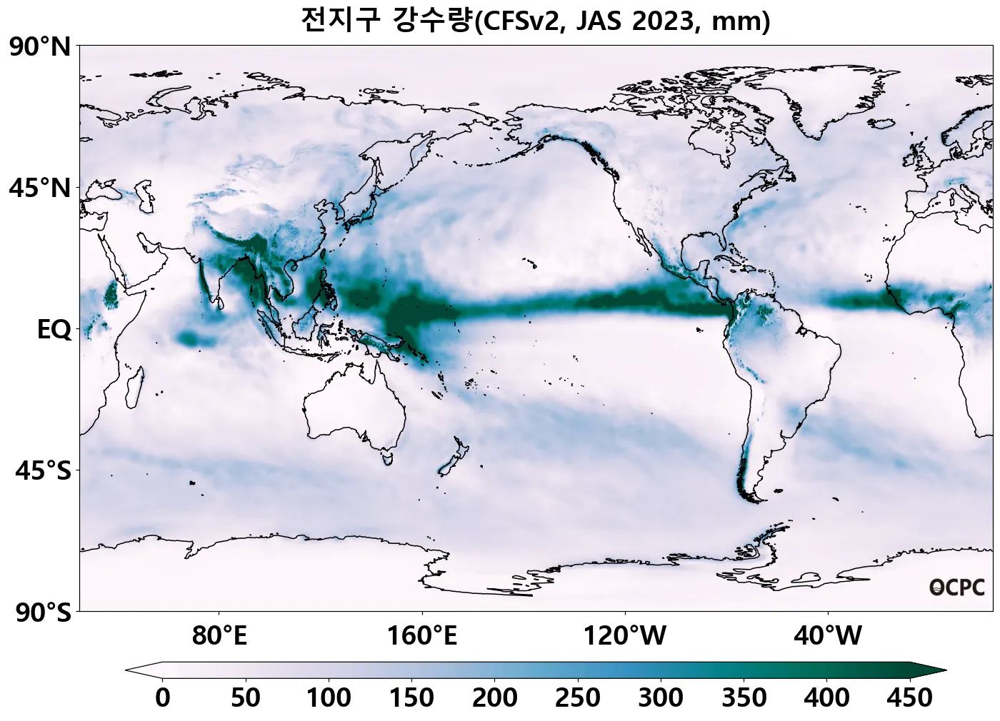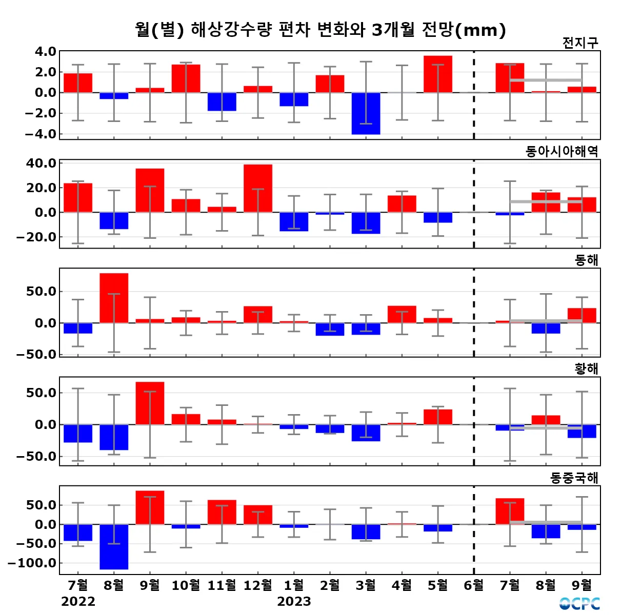 A. 전지구 강수량 전망(2023년 7~9월 평균)
