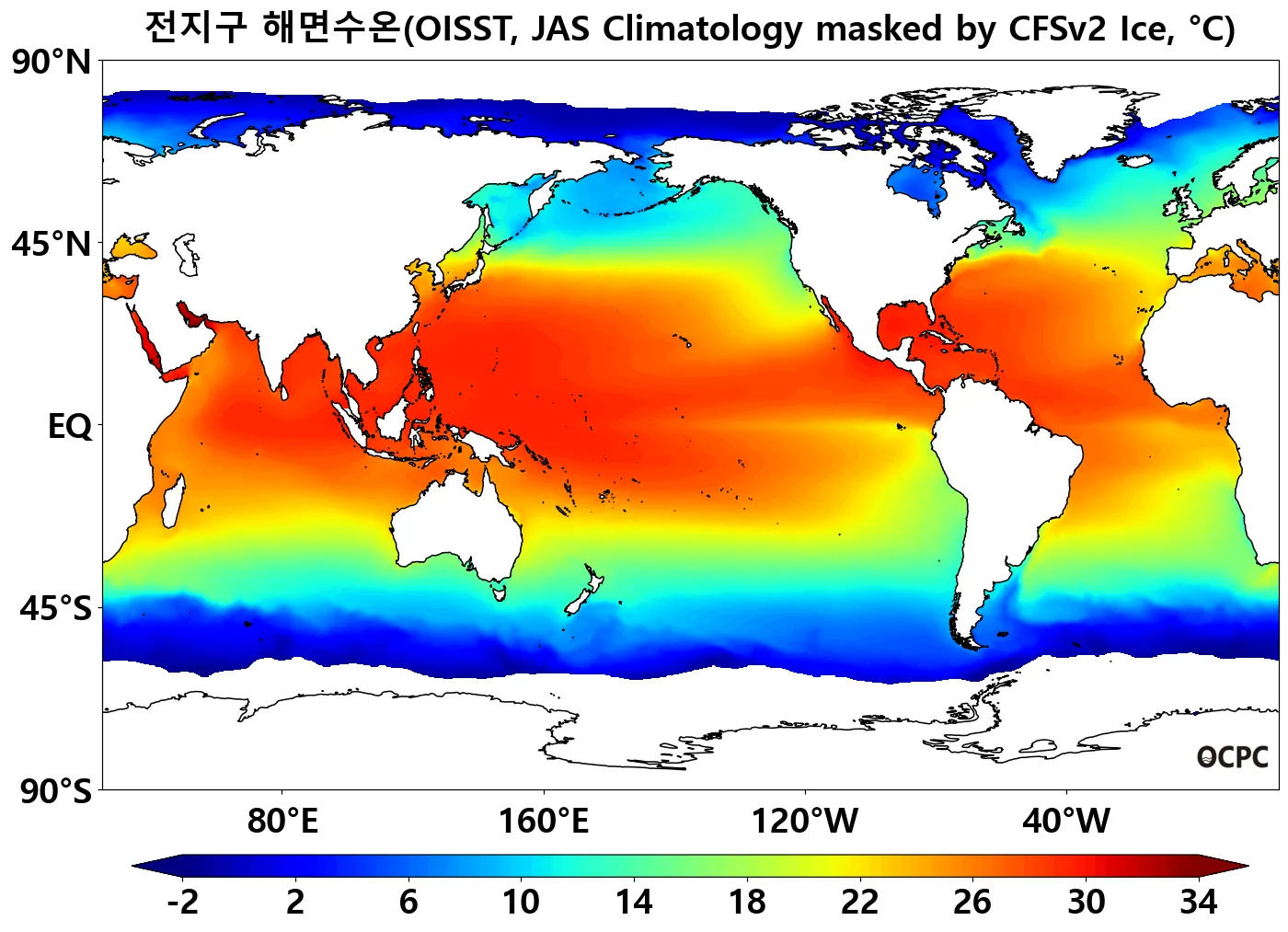 B. 전지구 해면수온(평년 7~9월 평균), 예상 해빙 해역 제외