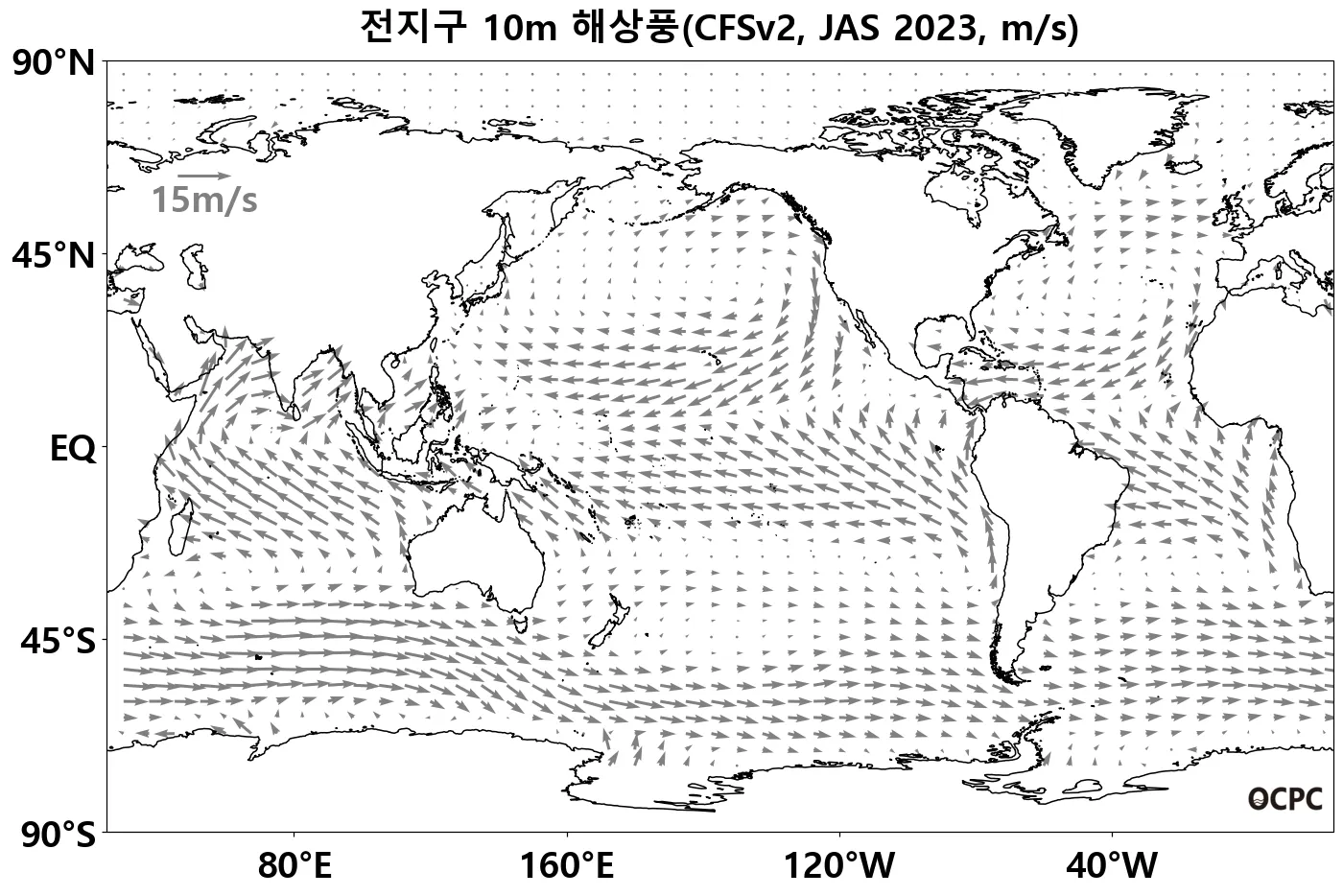 A. 전지구 해상풍 전망(2023년 7~9월 평균)