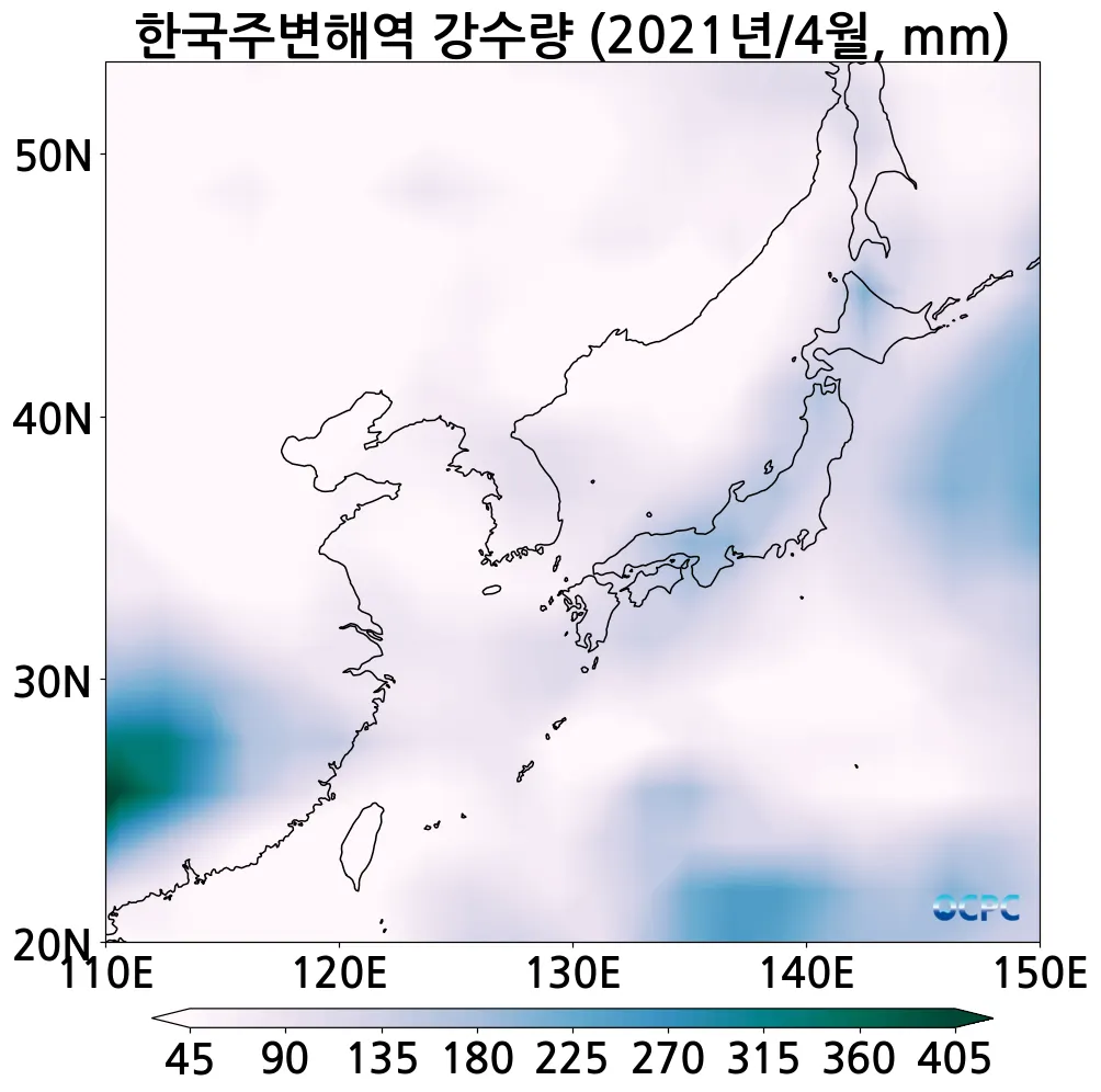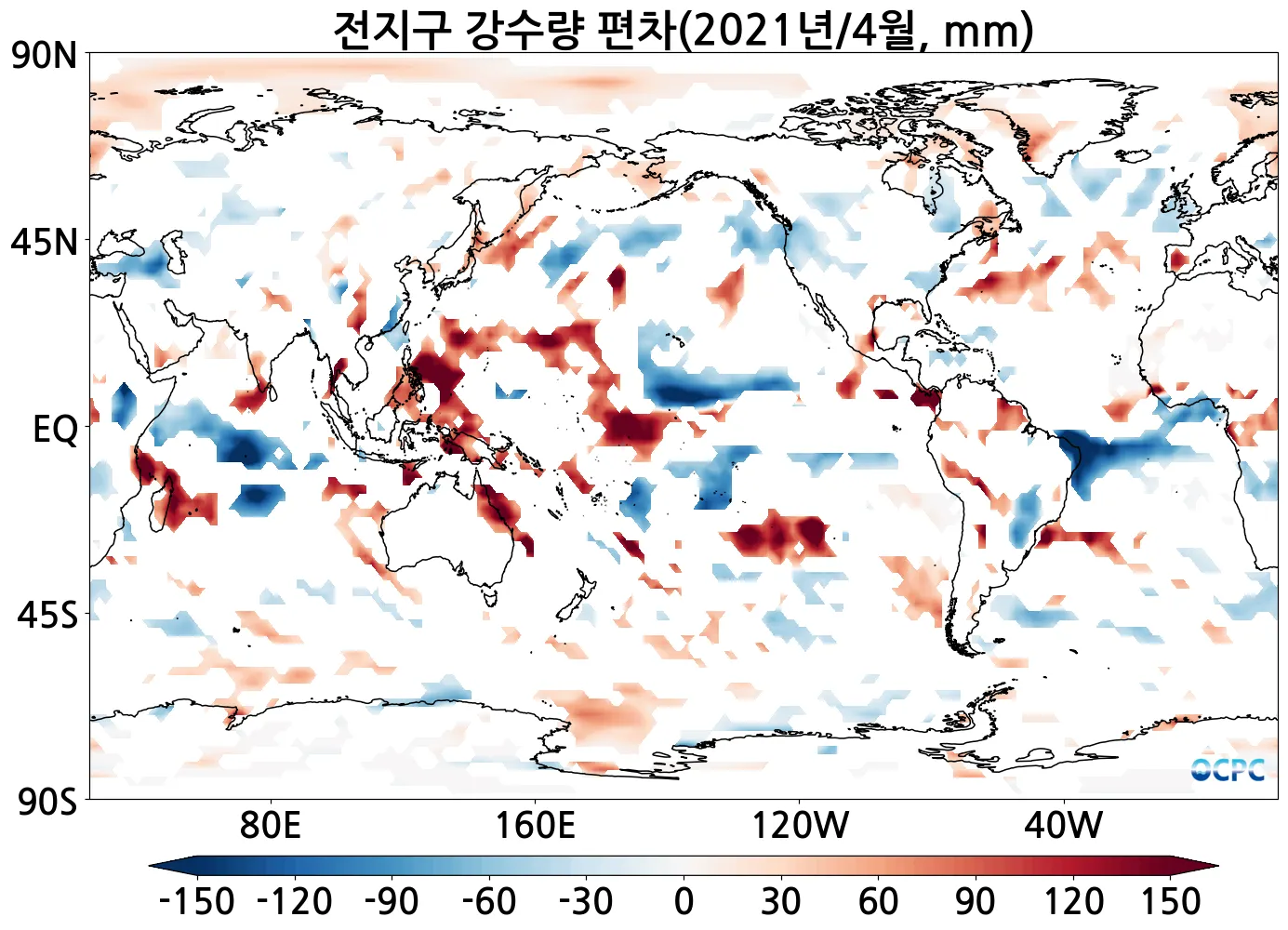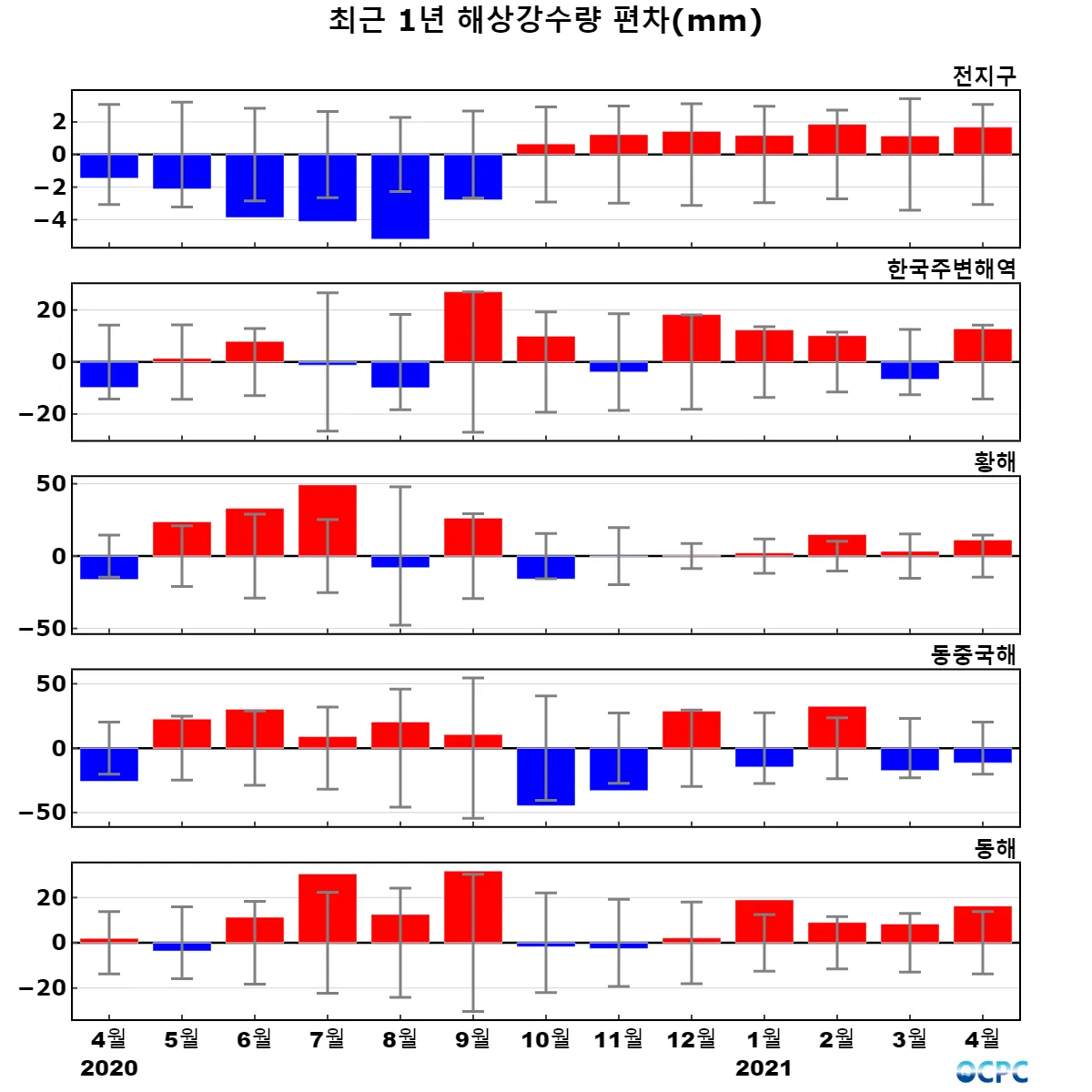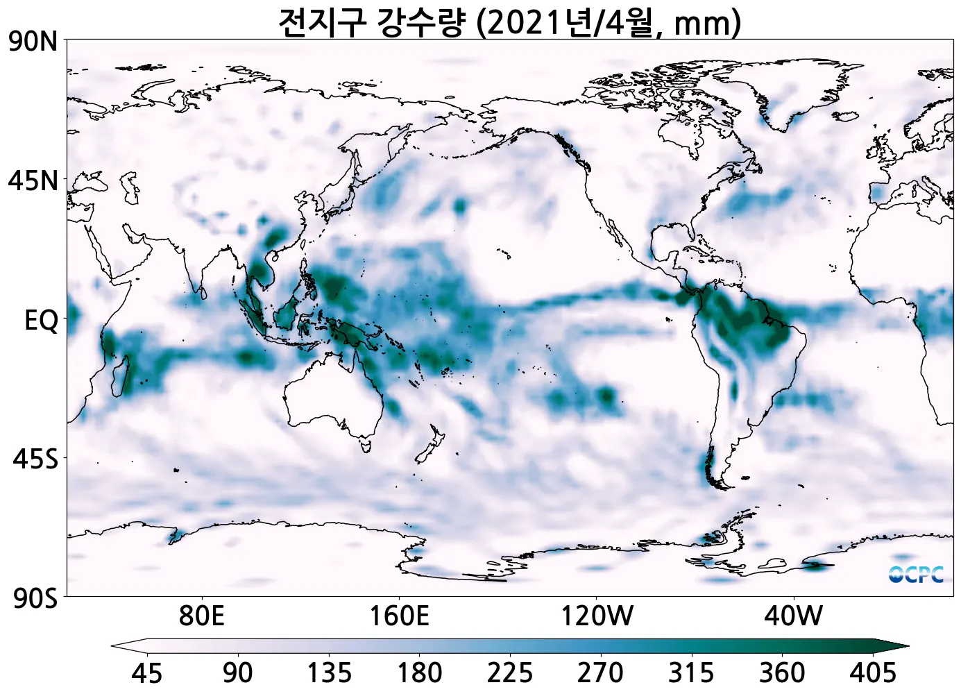 제2호 태풍 수리개(Surigae)의 영향으로 북서태평양 아열대 해역(필리핀 동부)의 해상강수량이 평년보다 많았습니다.