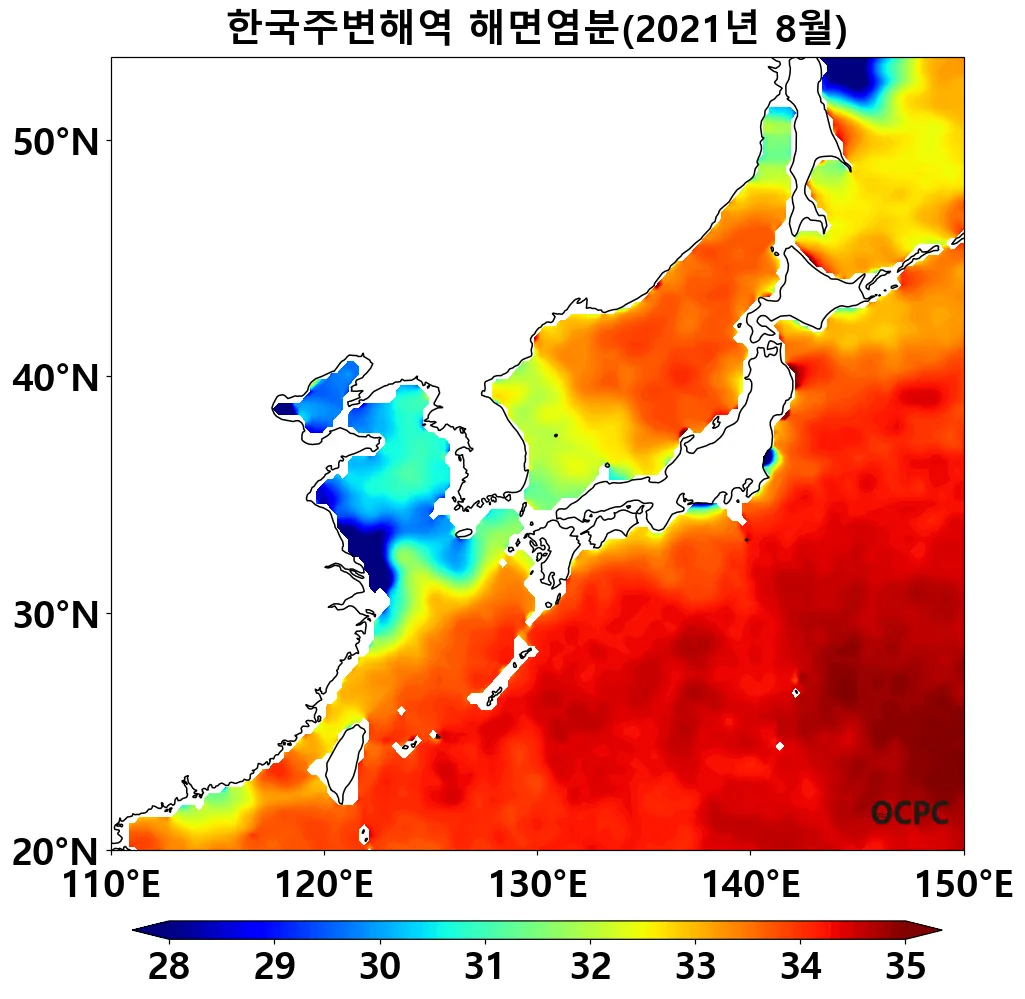 ** 인공위성을 이용한 해면염분 추정(SMAP)이 2015년부터 실용화되었으나 다른 자료에 비해서 불확실성이 크므로 참고하시기 바랍니다.