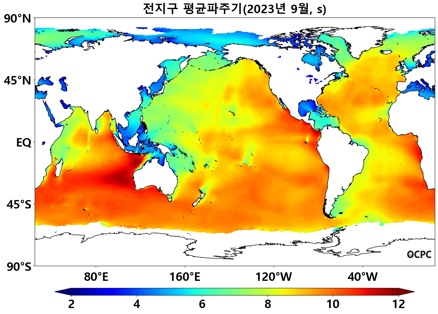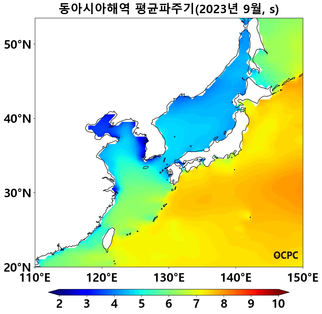 동해의 평균파주기는 평년(4.9±0.3초)보다 0.5초 감소했고, 황해, 동중국해는 평년(4.5±0.3초, 6.1±0.4초)과 비슷했습니다.