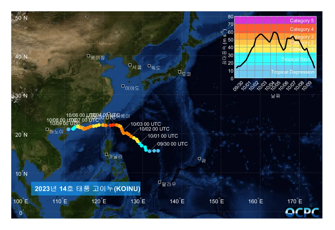 2023년 14호 태풍 고이누 (KOINU) 진로 및 강도