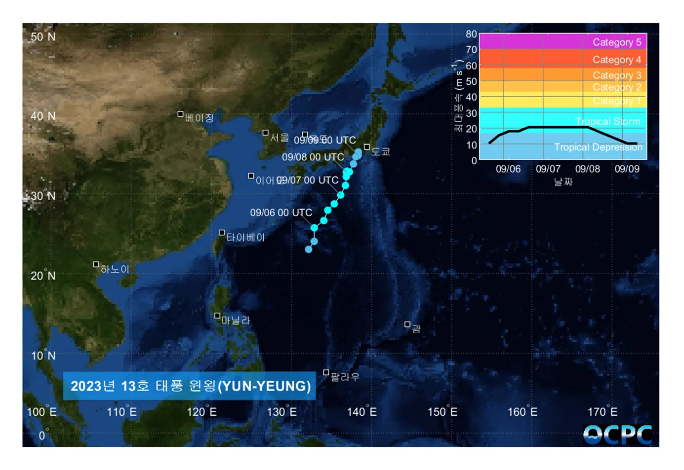 2023년 13호 태풍 윈욍 (YUN-YEUNG) 진로 및 강도