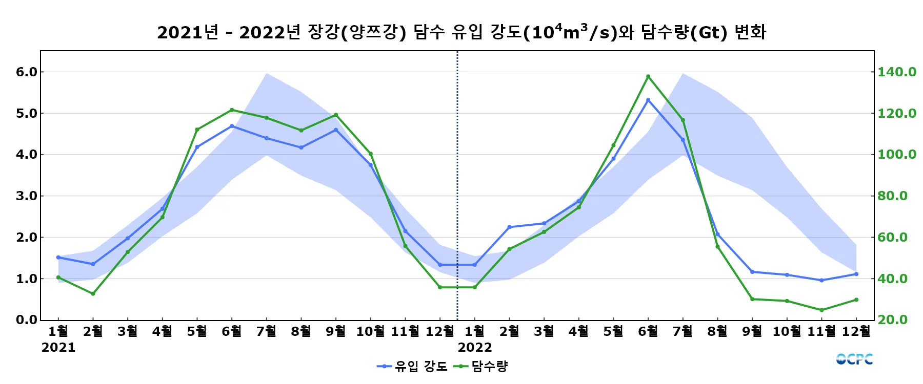 음영표시: 유입 강도 평년구간(평년평균±표준편차)